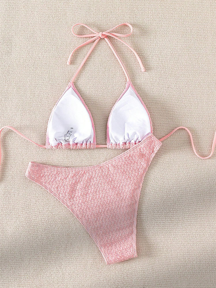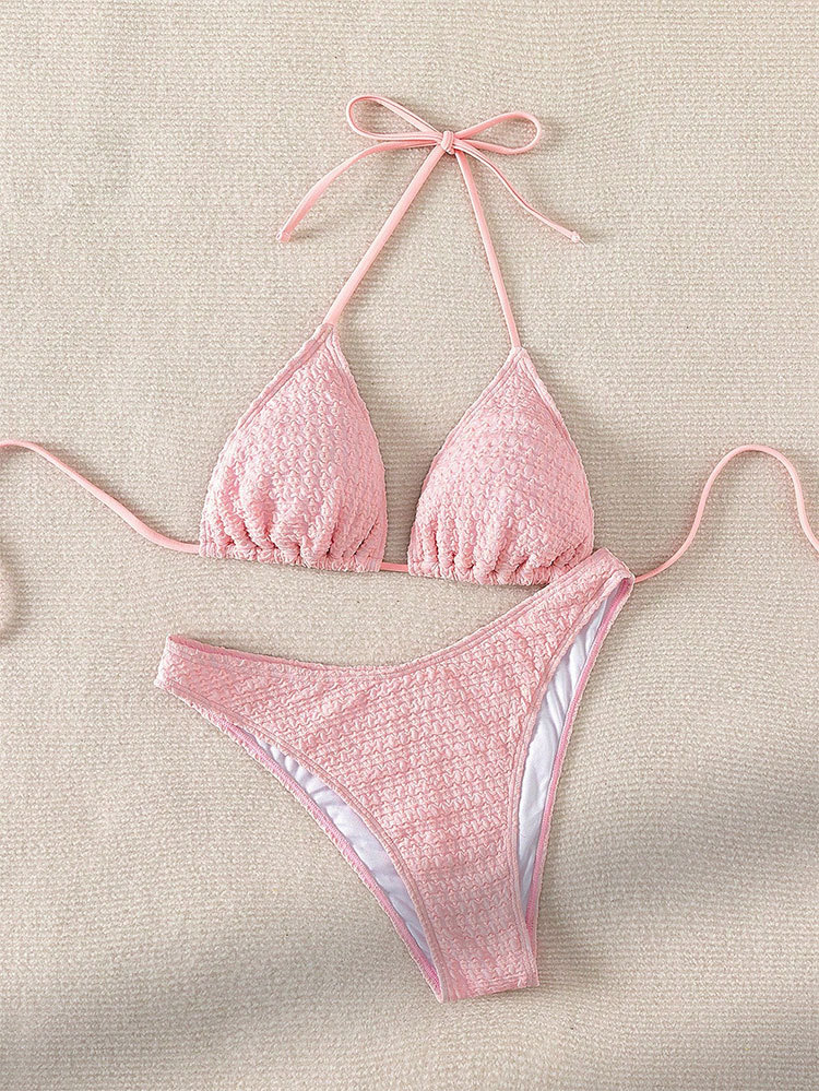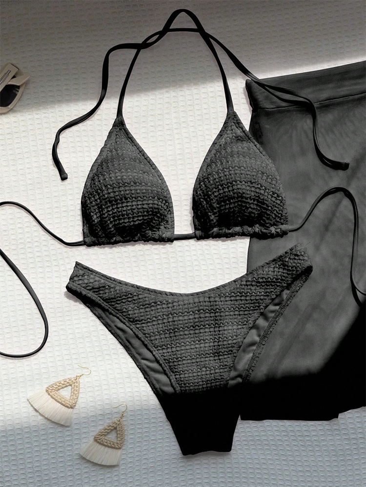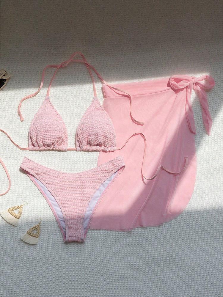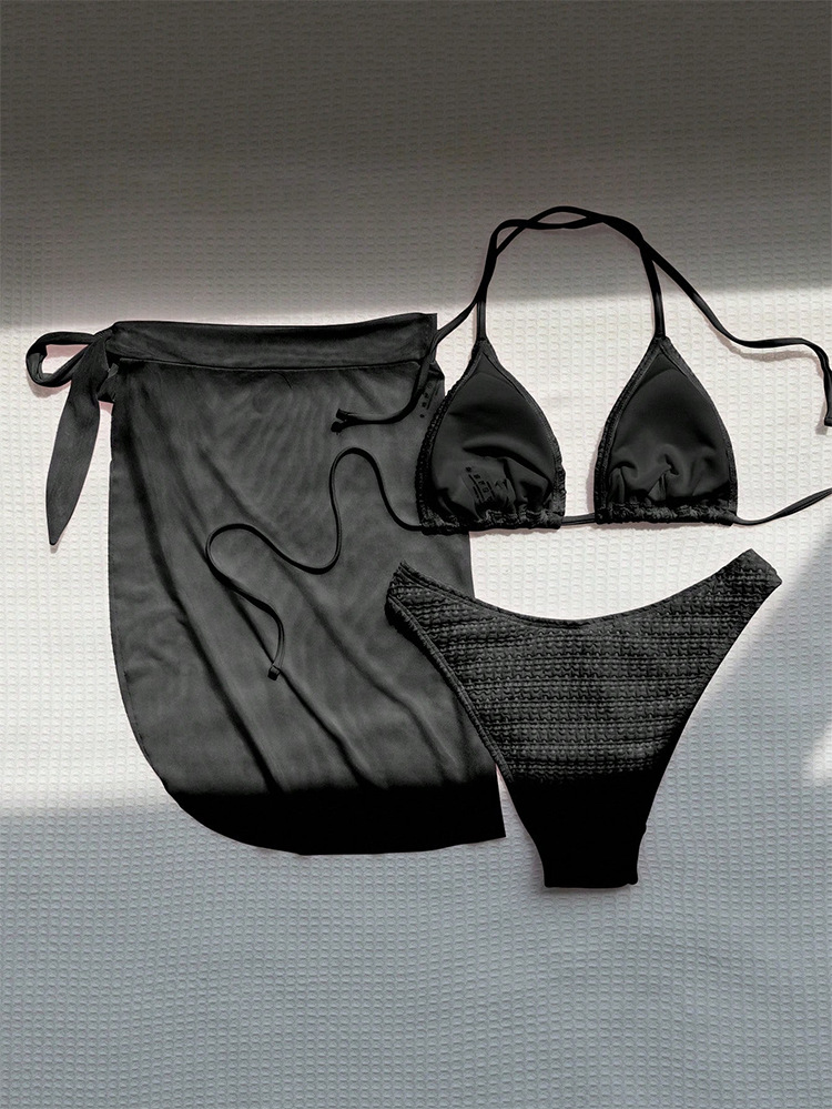아마존 2024 새로운 여름 국경 메쉬 3 피스 수영복 레이스 업 섹시한 해변 비키니 도매스토어 가기