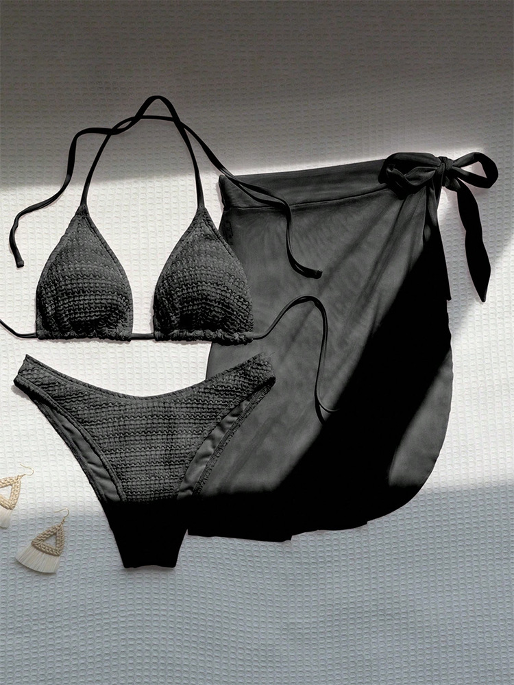 아마존 2024 새로운 여름 국경 메쉬 3 피스 수영복 레이스 업 섹시한 해변 비키니 도매