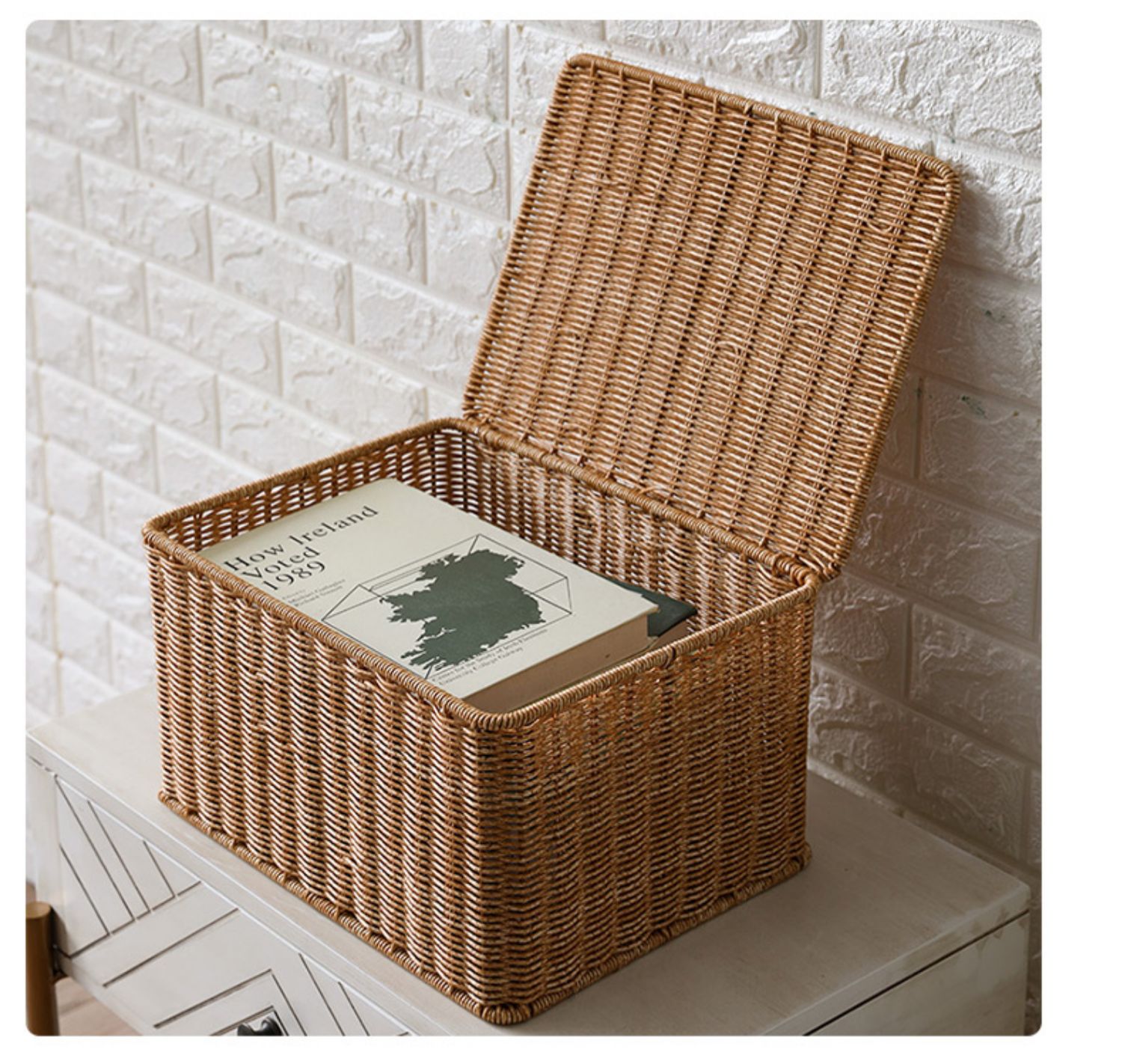 3zbykens 유럽식 보관함 침실 옷 마무리 상자 모조 등나무 짠 야외 보관 바구니 옷장 보관