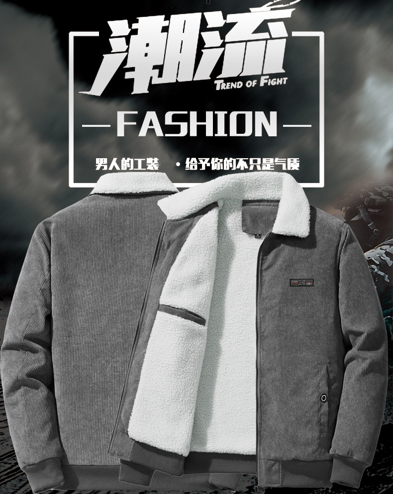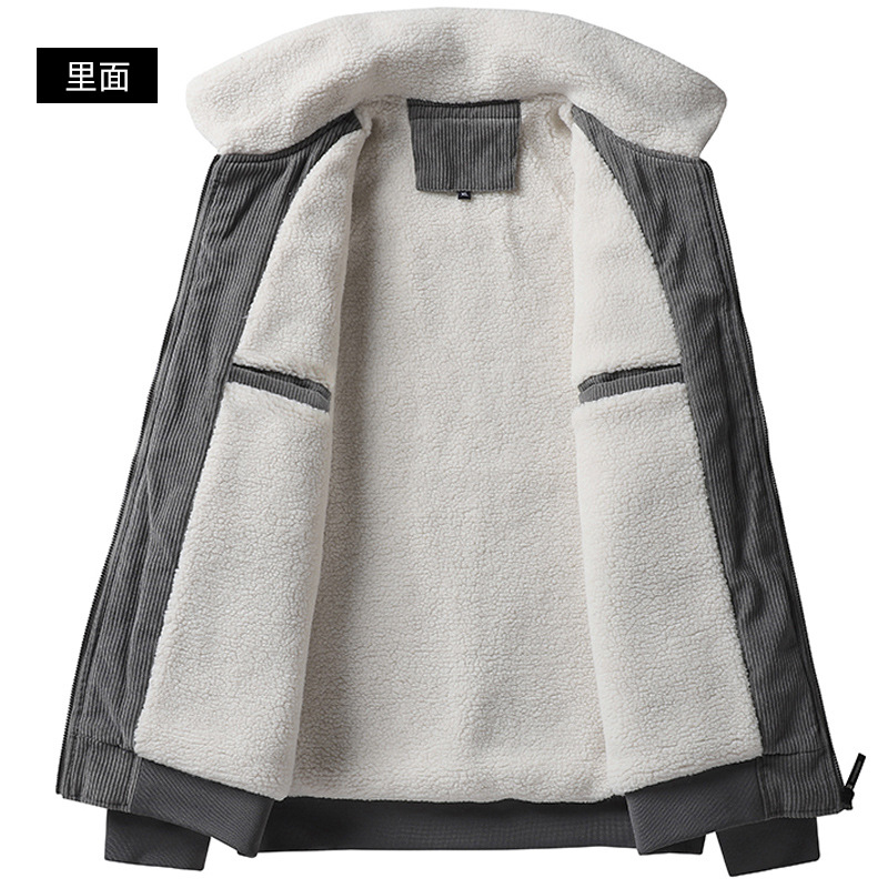 겨울 새로운 코듀로이 재킷 남자의 기모 두꺼운 유행 칼라 양가죽 캐주얼 남자의 재킷 유행 겨울 의류스토어 가기