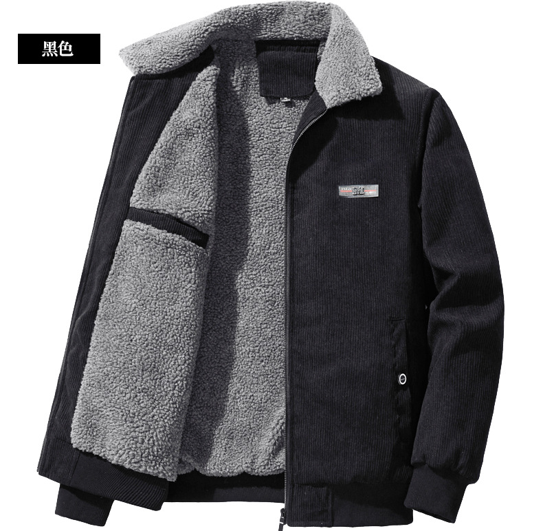 겨울 새로운 코듀로이 재킷 남자의 기모 두꺼운 유행 칼라 양가죽 캐주얼 남자의 재킷 유행 겨울 의류