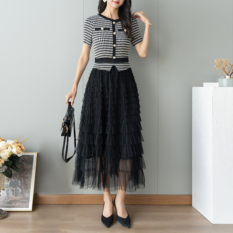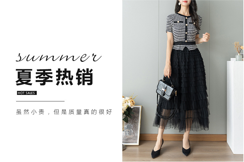 블랙 샤넬 스타일 투피스 원피스 여름 새로운 한국 스타일 우아한 디자인 센스 캐주얼 스커트 세트 여성