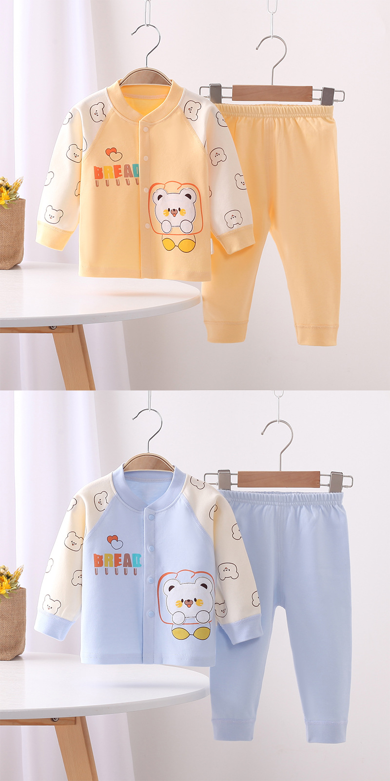 가을과 겨울 새로운 아기 속옷 세트 소년과 소녀 아기 만화 뼈없는 가을 옷 긴 소매 사계절 가정 옷스토어 가기