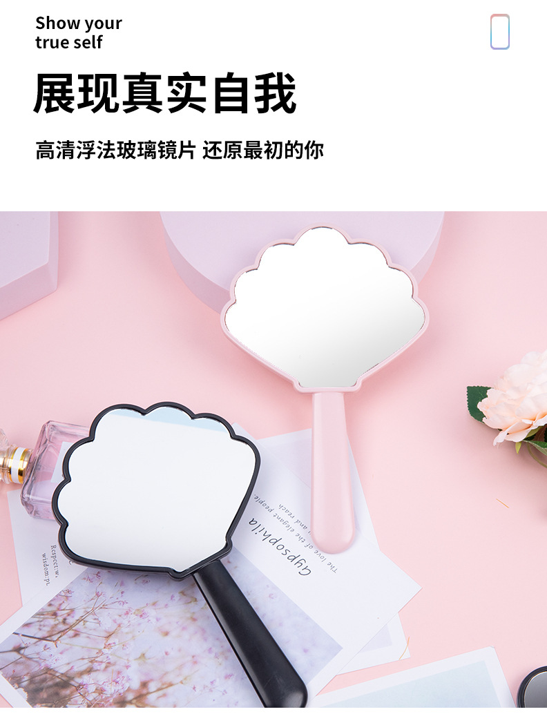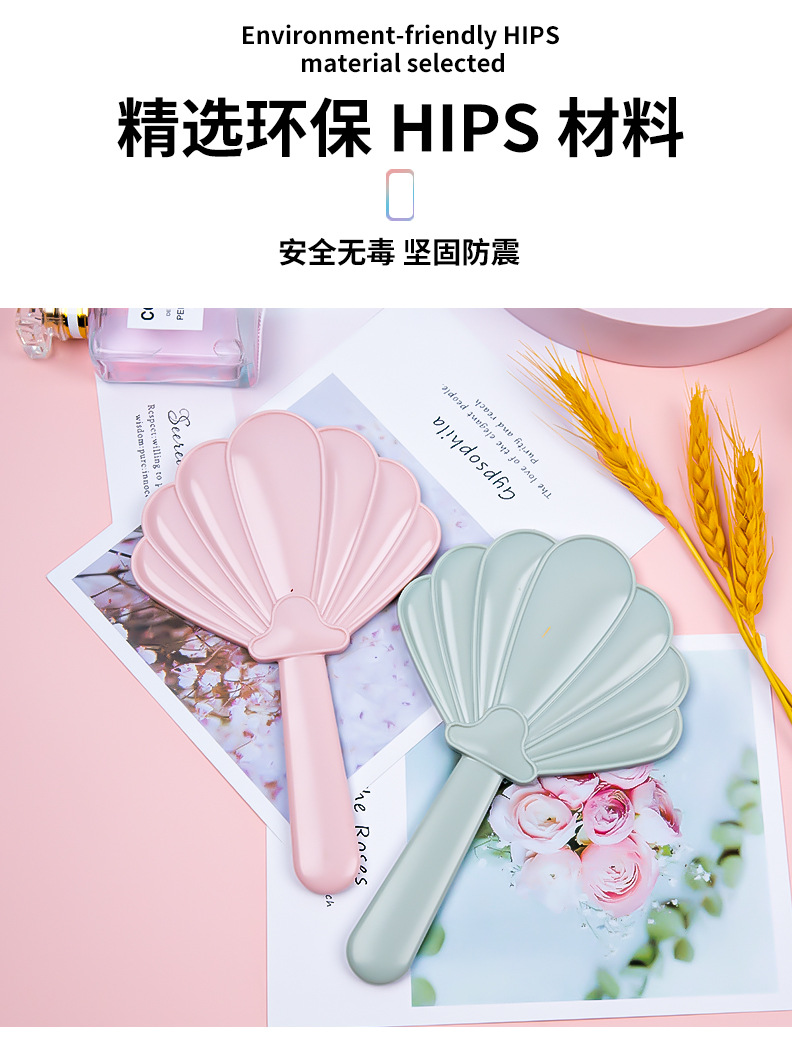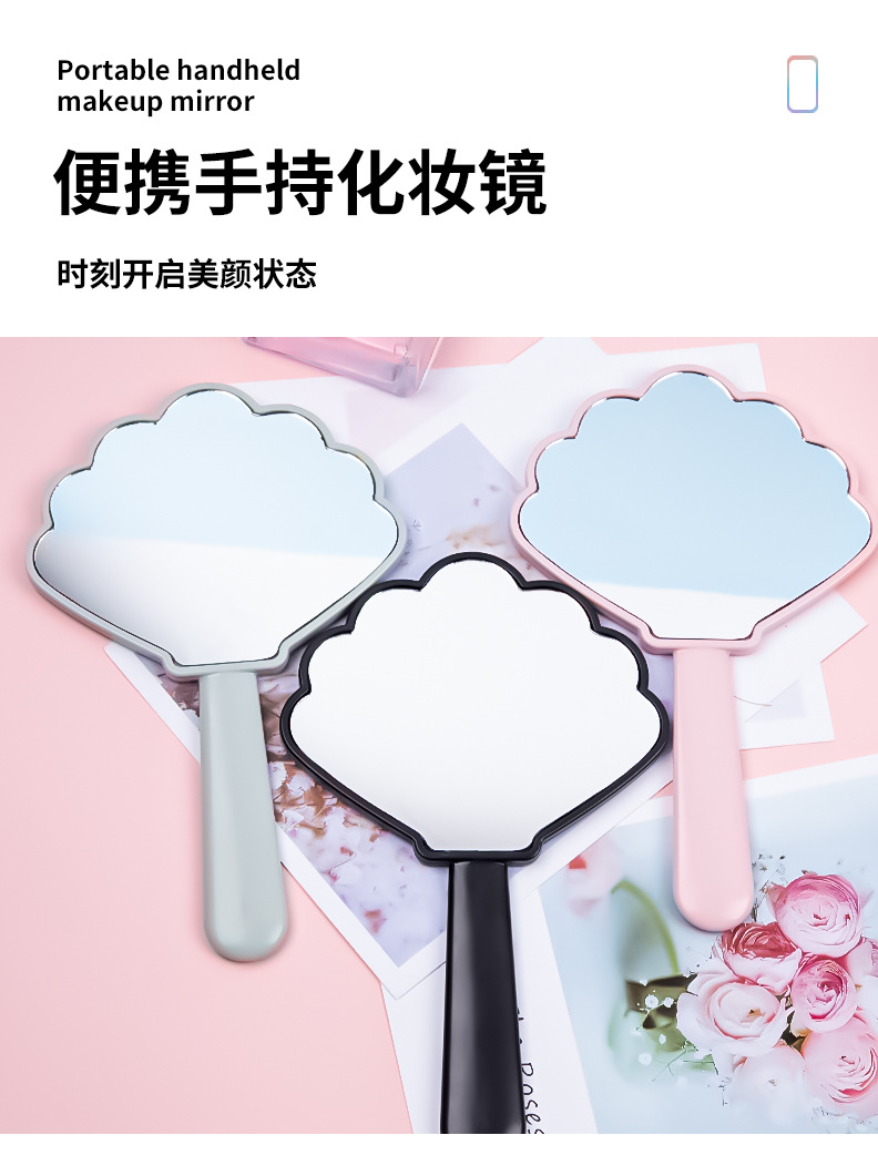 새로운 쉘 미러 플라스틱 고화질 핸들 미러 로고 핸드 미러 휴대용 소형 미러 불규칙 메이크업 미러스토어 가기