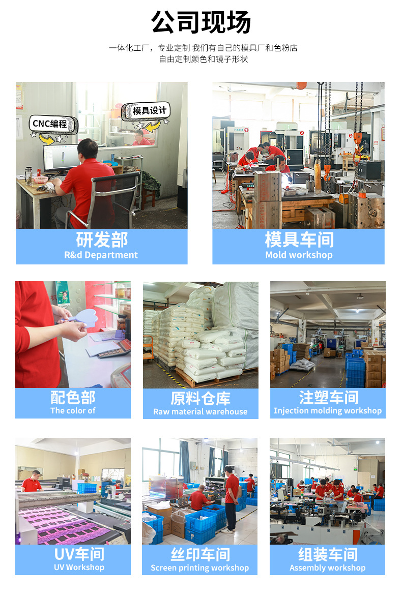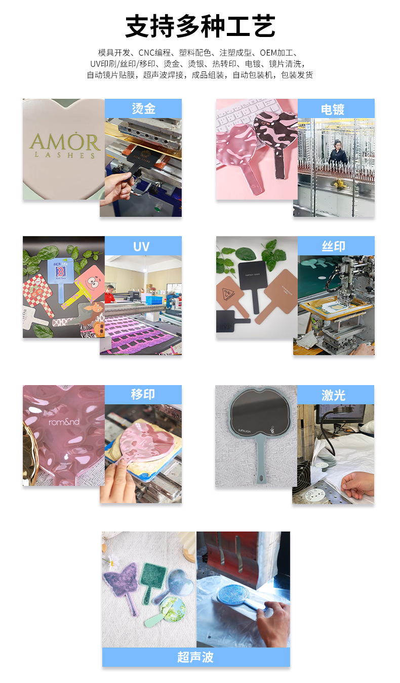 새로운 쉘 미러 플라스틱 고화질 핸들 미러 로고 핸드 미러 휴대용 소형 미러 불규칙 메이크업 미러