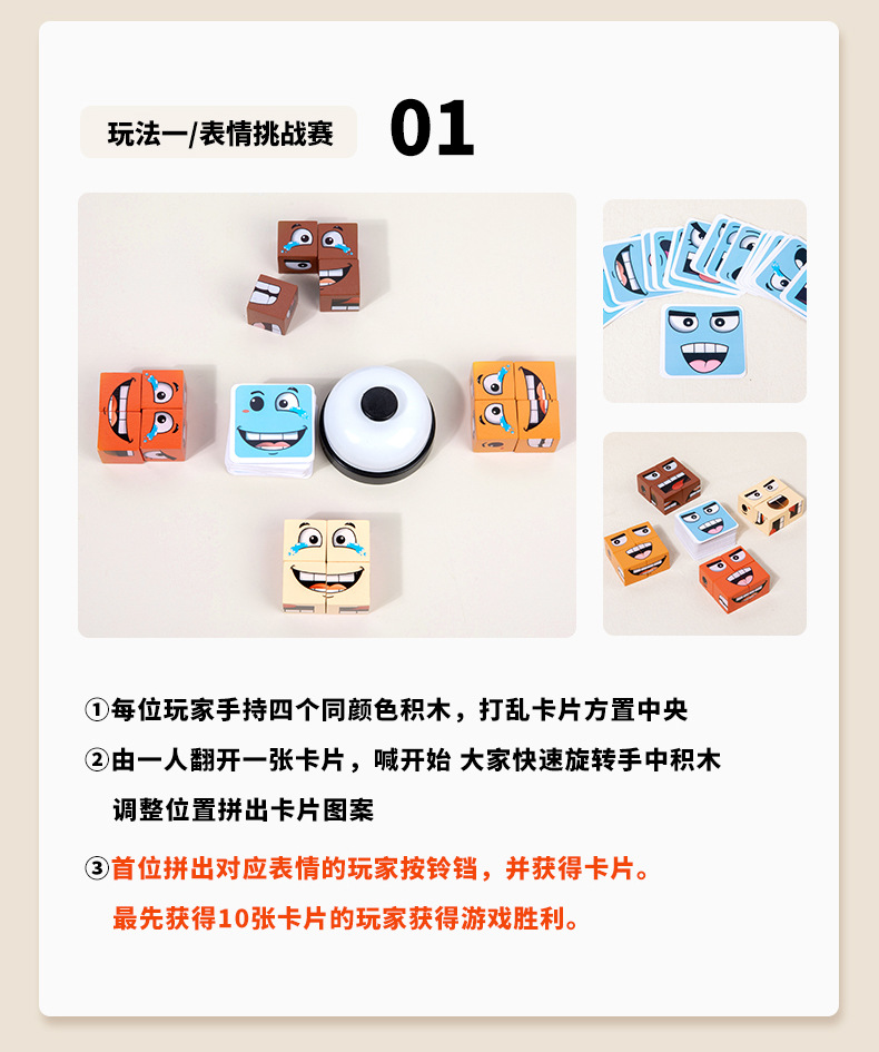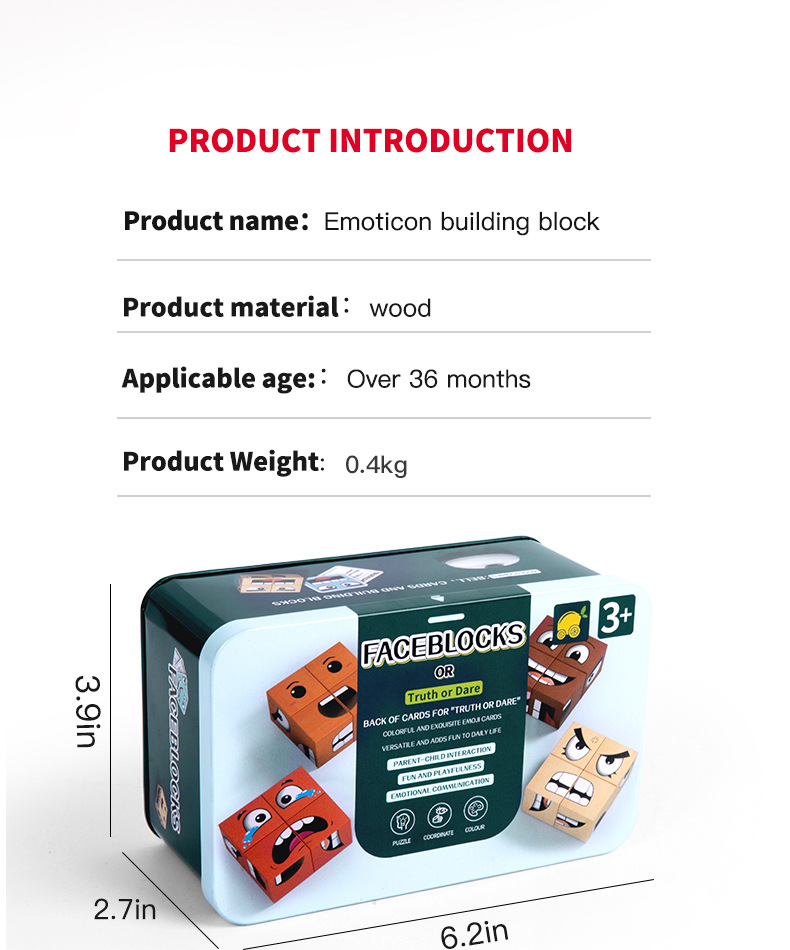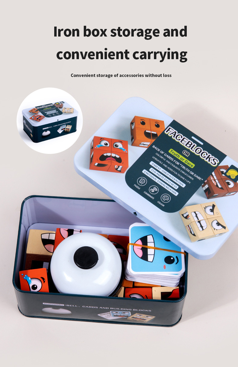 표정 변화 루빅스 큐브 빌딩 블록 철 상자 어린이 전투 장난감 부모-자식 보드 게임 나무 진실 또는 감히