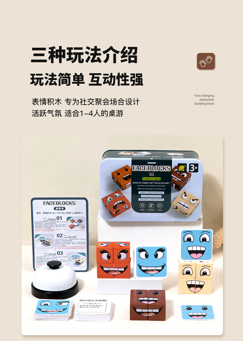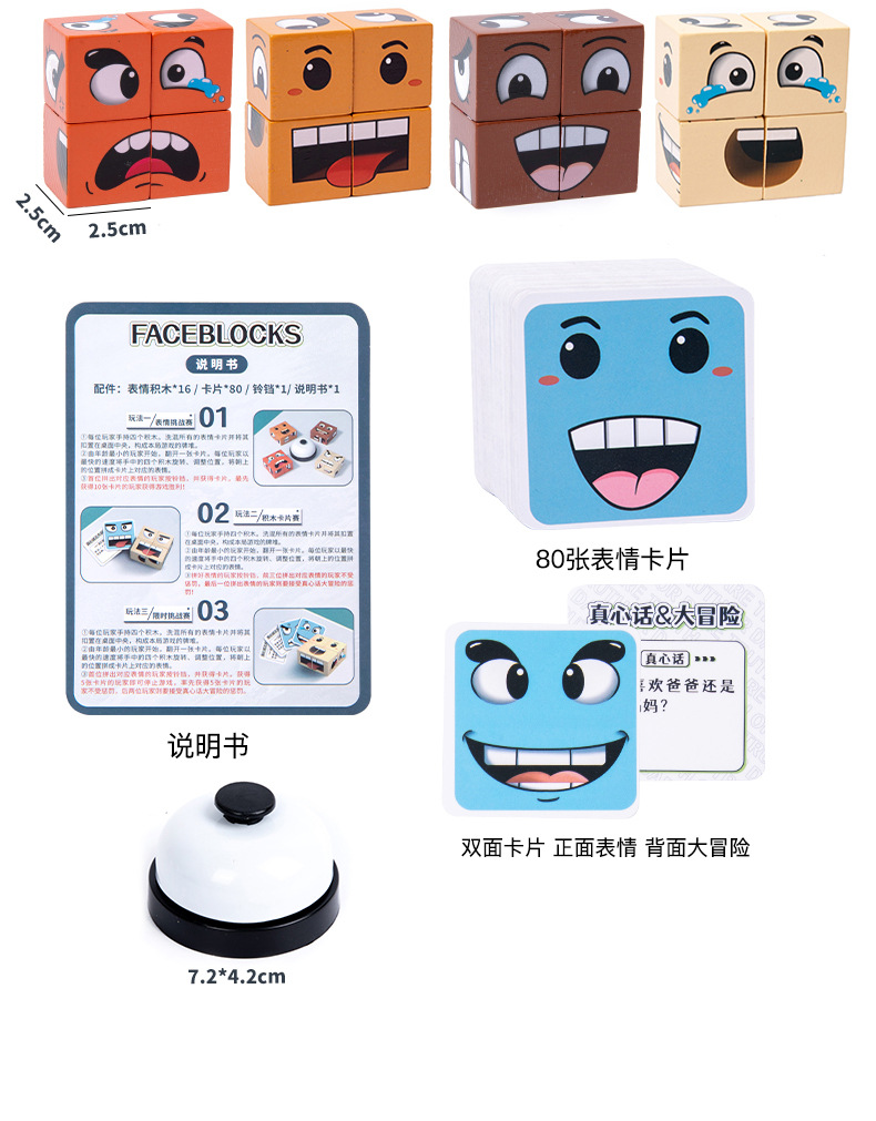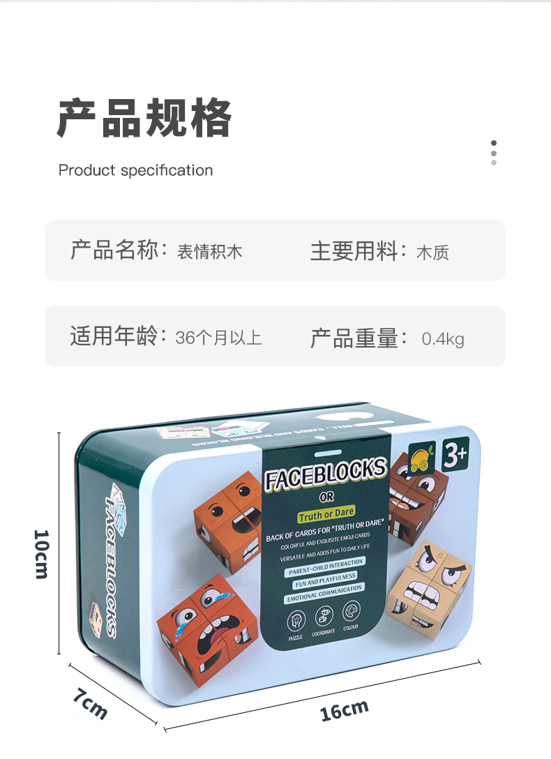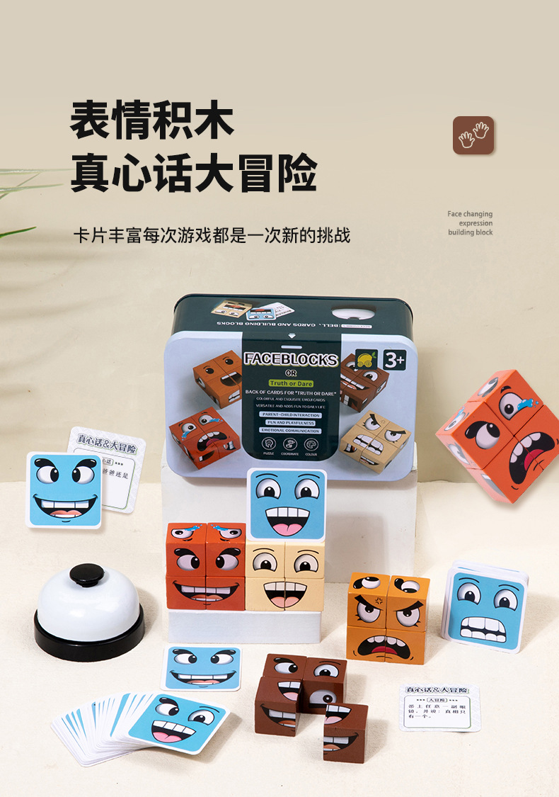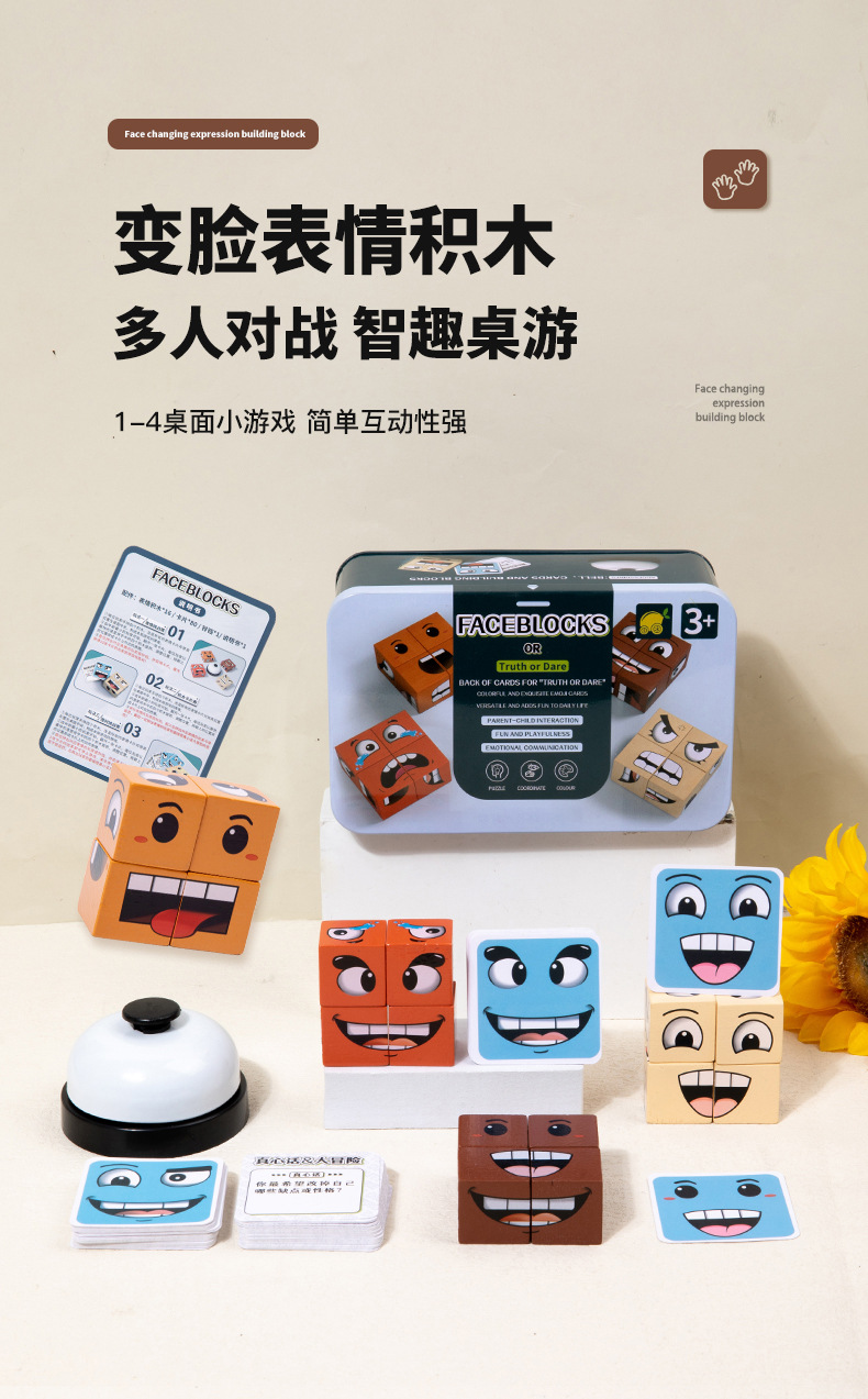 표정 변화 루빅스 큐브 빌딩 블록 철 상자 어린이 전투 장난감 부모-자식 보드 게임 나무 진실 또는 감히스토어 가기