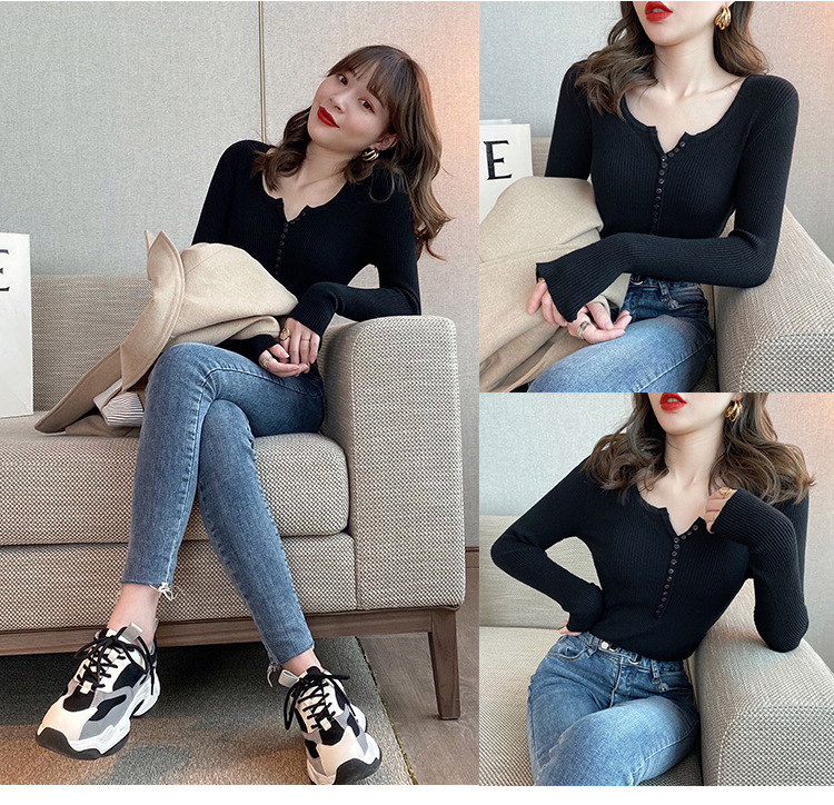 니트 스웨터 여성용 2023 가을 겨울 이너베이스 셔츠 새로운 폭발 슬림핏 긴팔 블랙 타이트 탑스토어 가기
