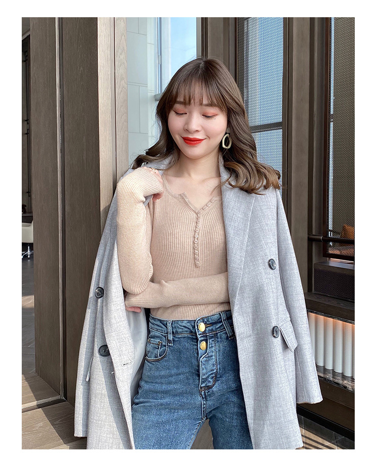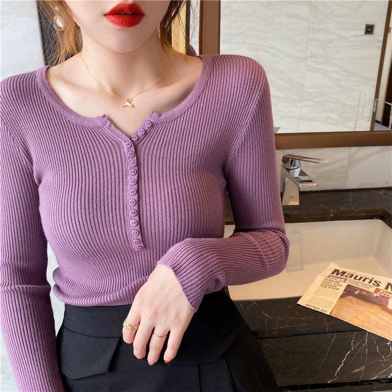 니트 스웨터 여성용 2023 가을 겨울 이너베이스 셔츠 새로운 폭발 슬림핏 긴팔 블랙 타이트 탑