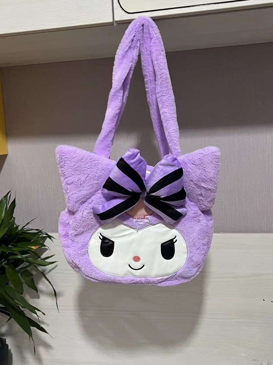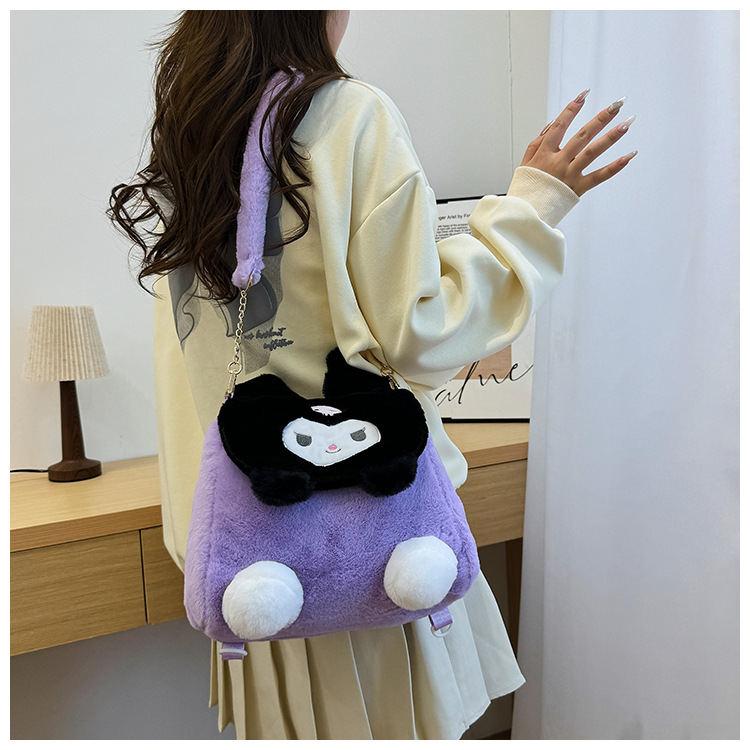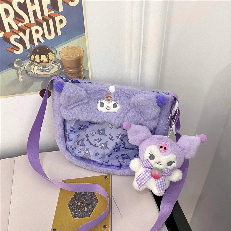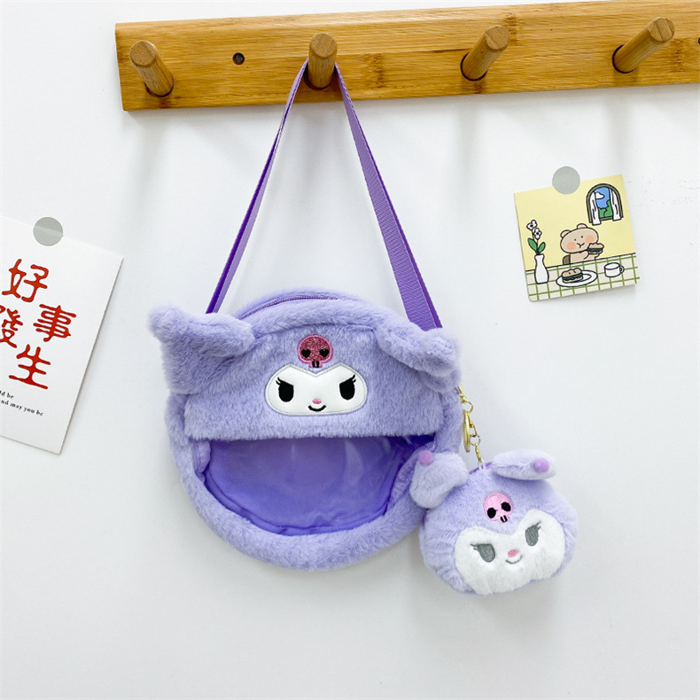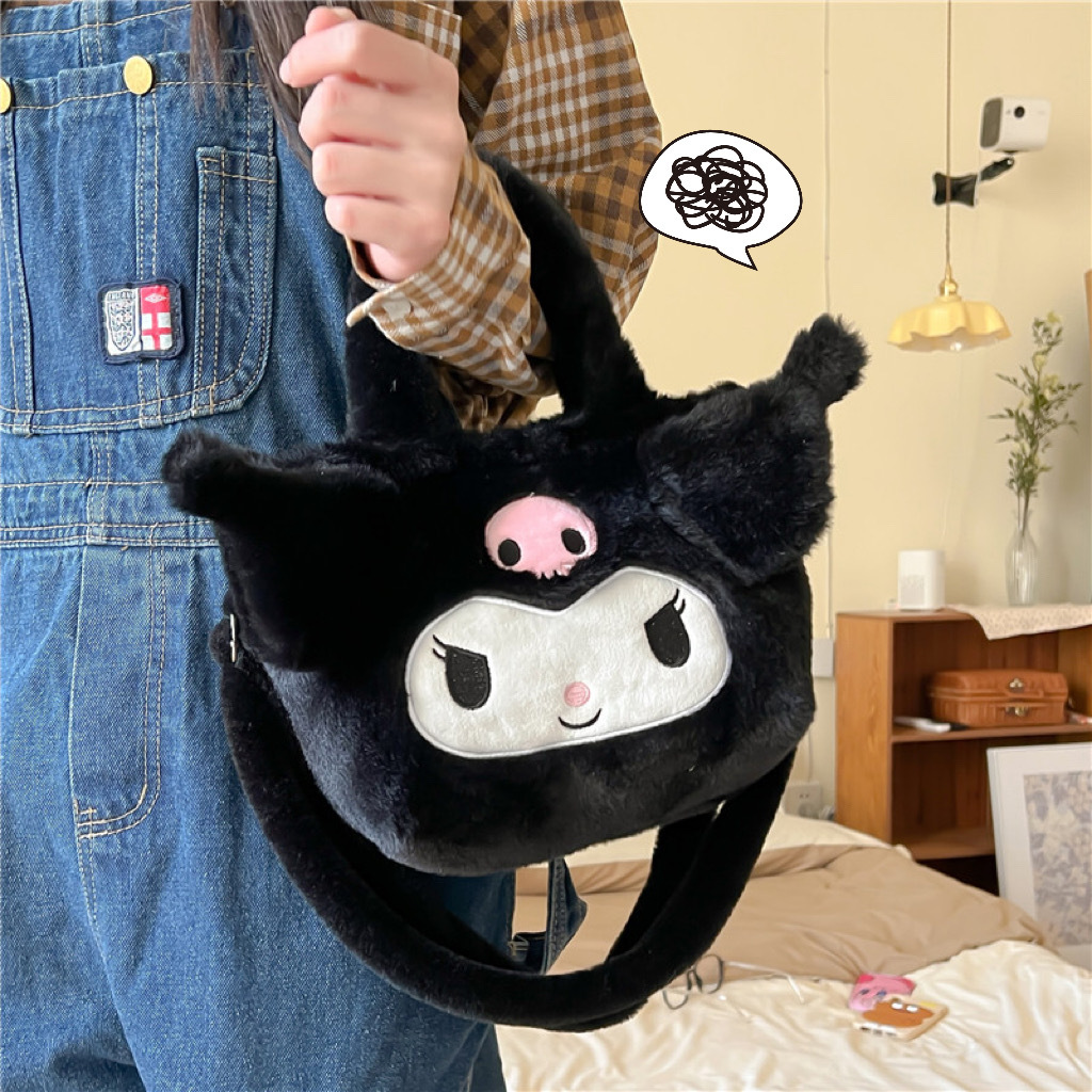 2025 새로운 만화 봉제 인형 어깨 크로스 바디 백 부드러운 귀여운 소녀 ins 귀여운 Kuromi 더블 백 여성용 가방