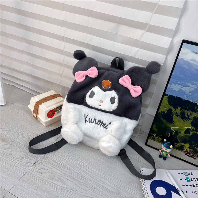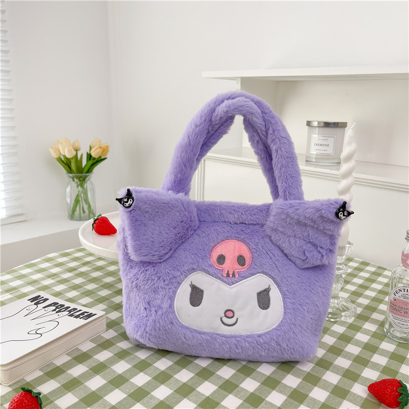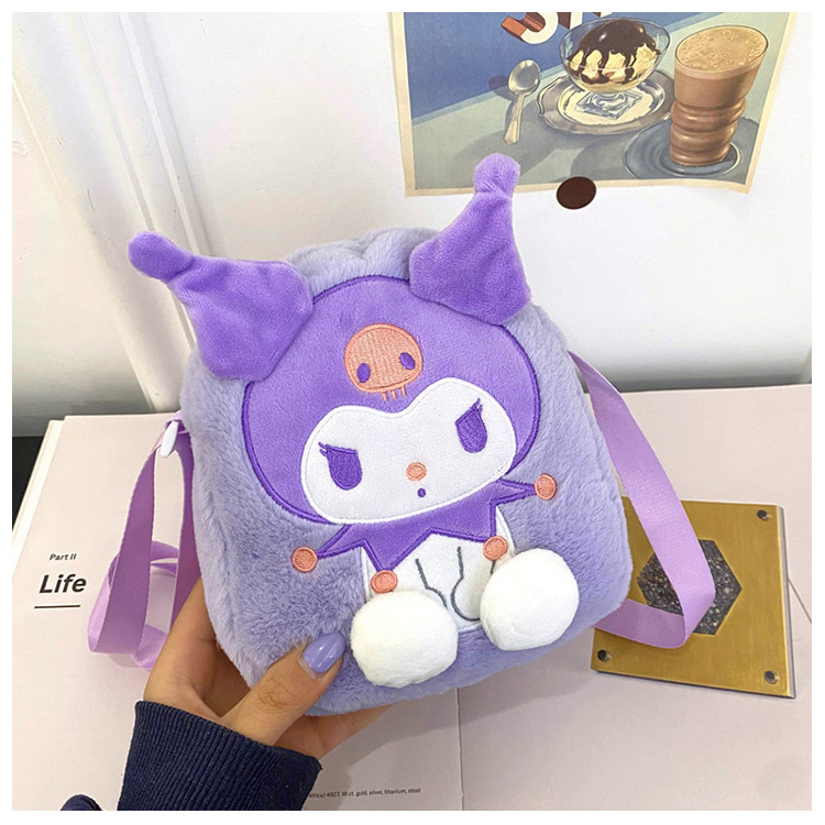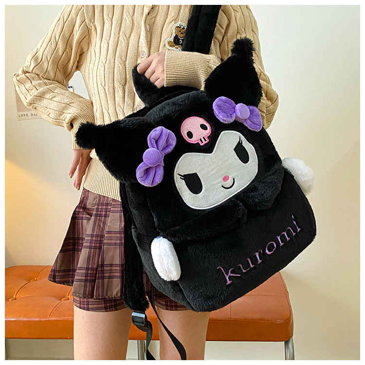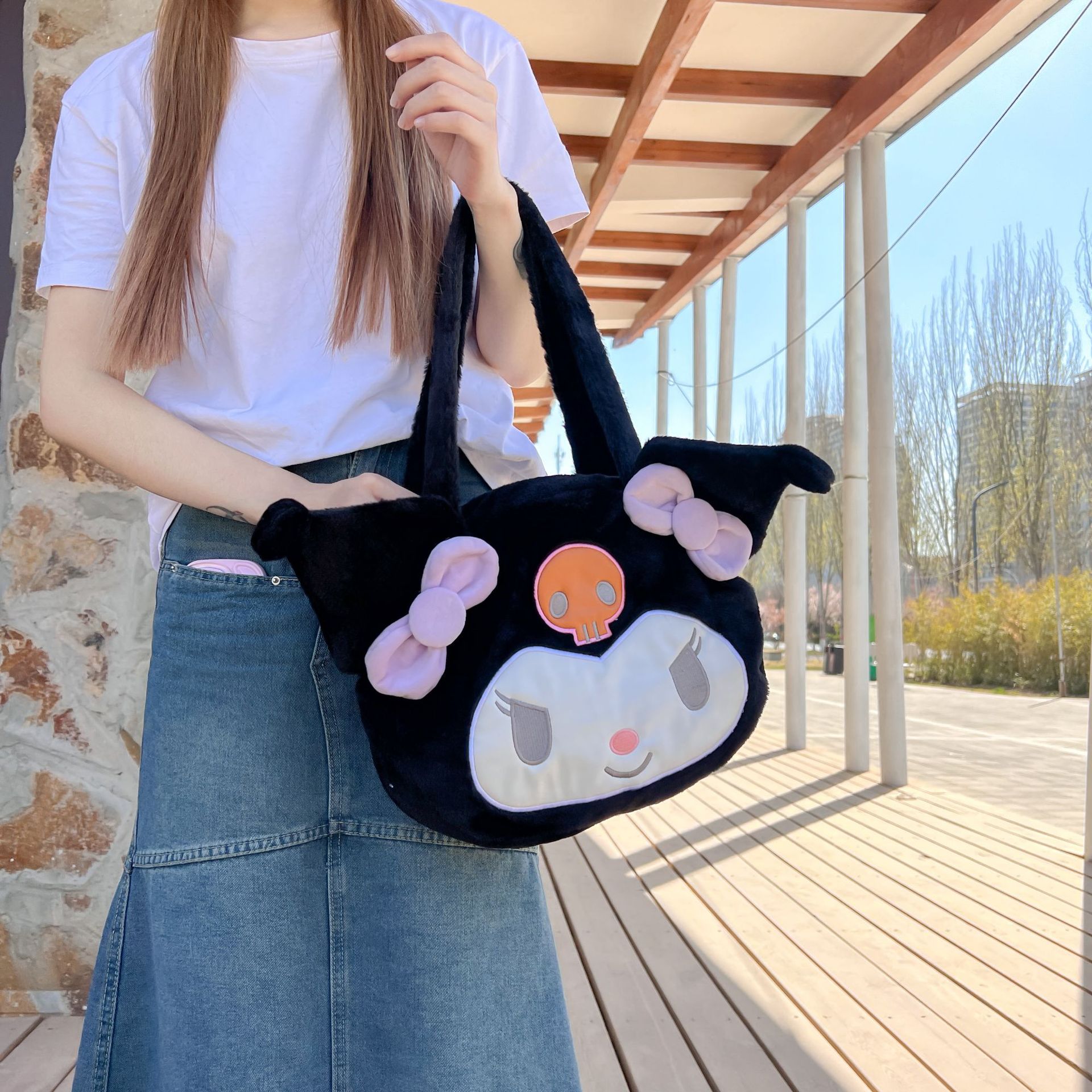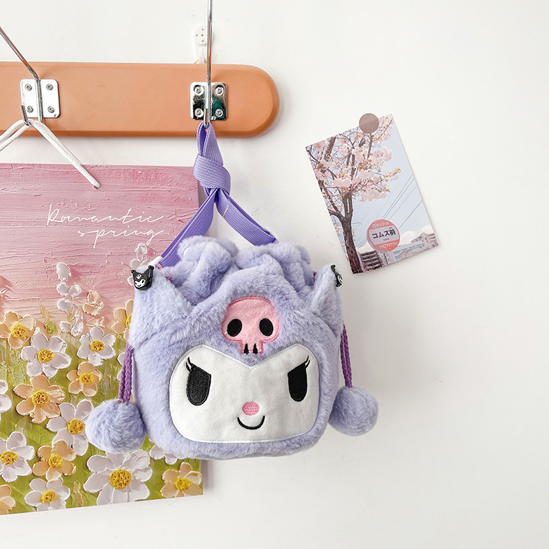 2025 새로운 만화 봉제 인형 어깨 크로스 바디 백 부드러운 귀여운 소녀 ins 귀여운 Kuromi 더블 백 여성용 가방