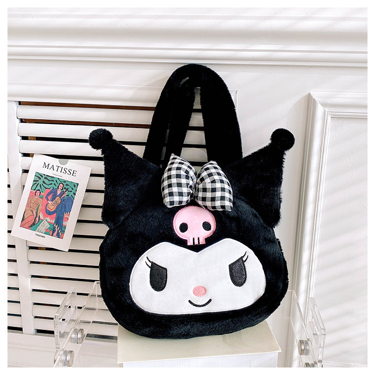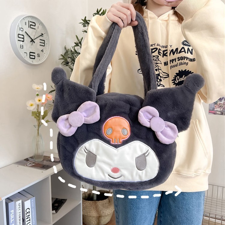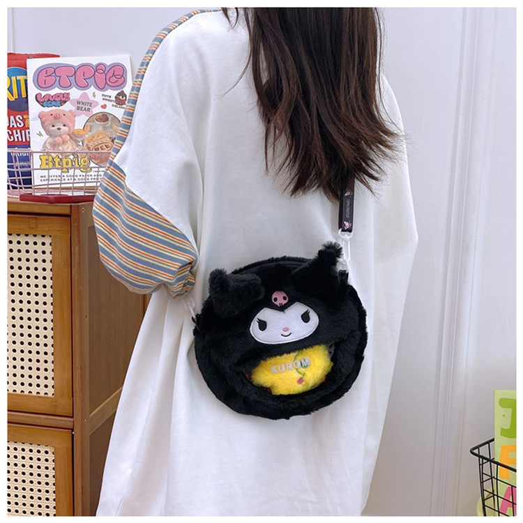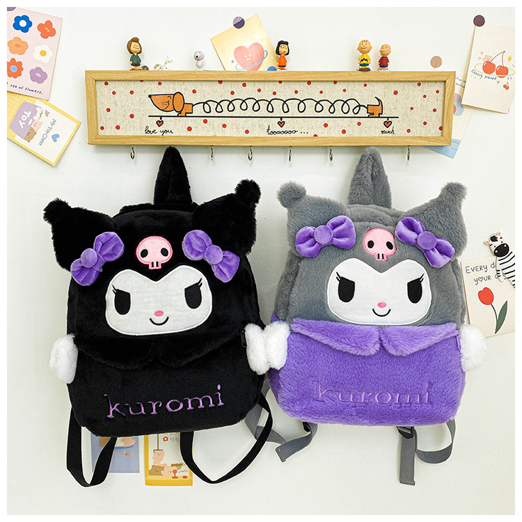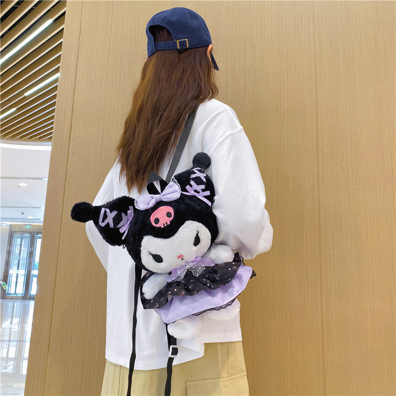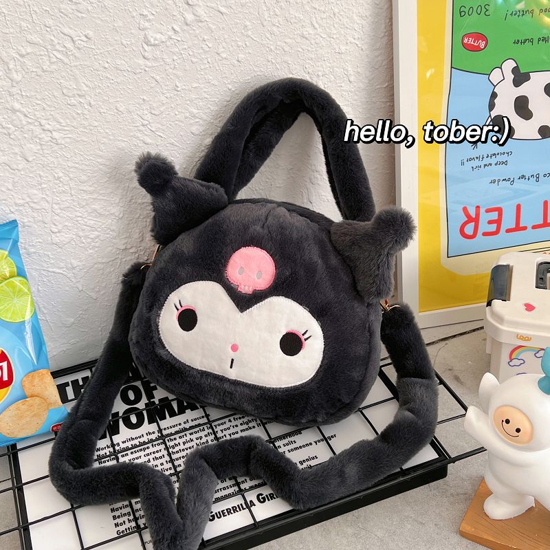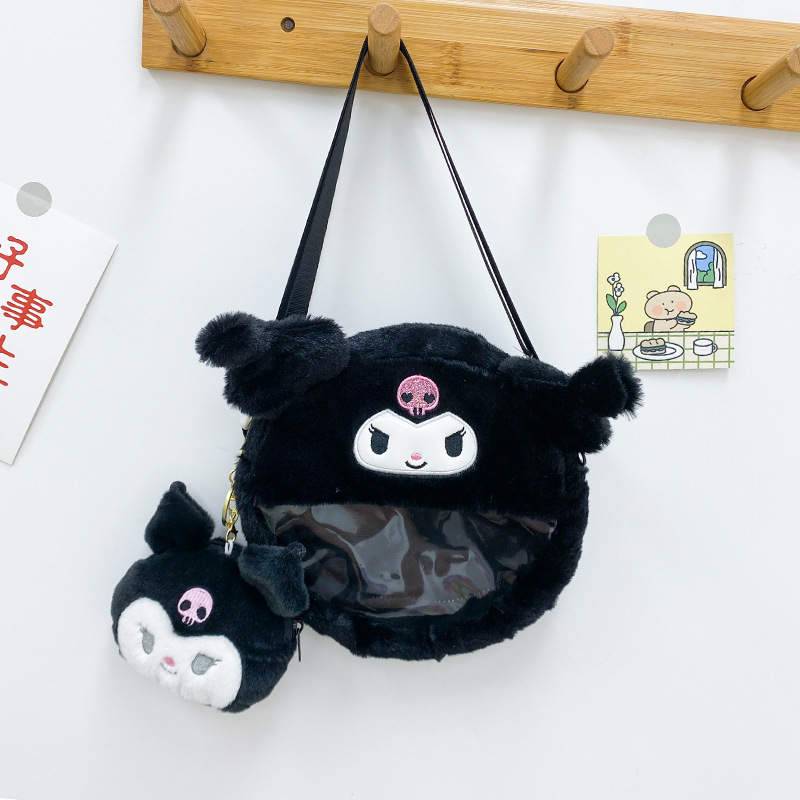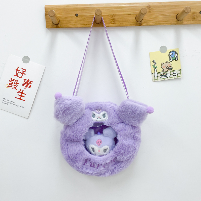 2025 새로운 만화 봉제 인형 어깨 크로스 바디 백 부드러운 귀여운 소녀 ins 귀여운 Kuromi 더블 백 여성용 가방스토어 가기