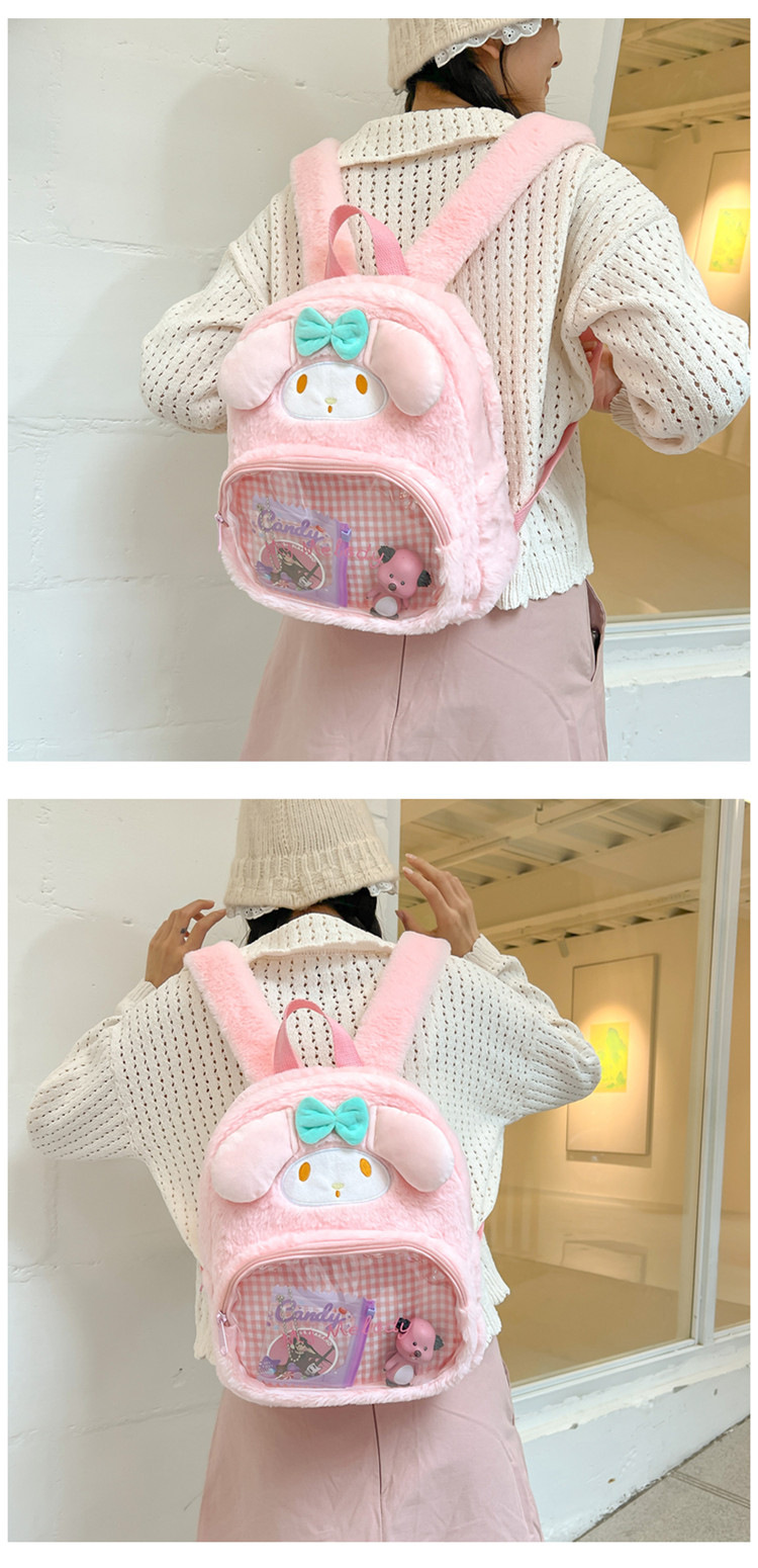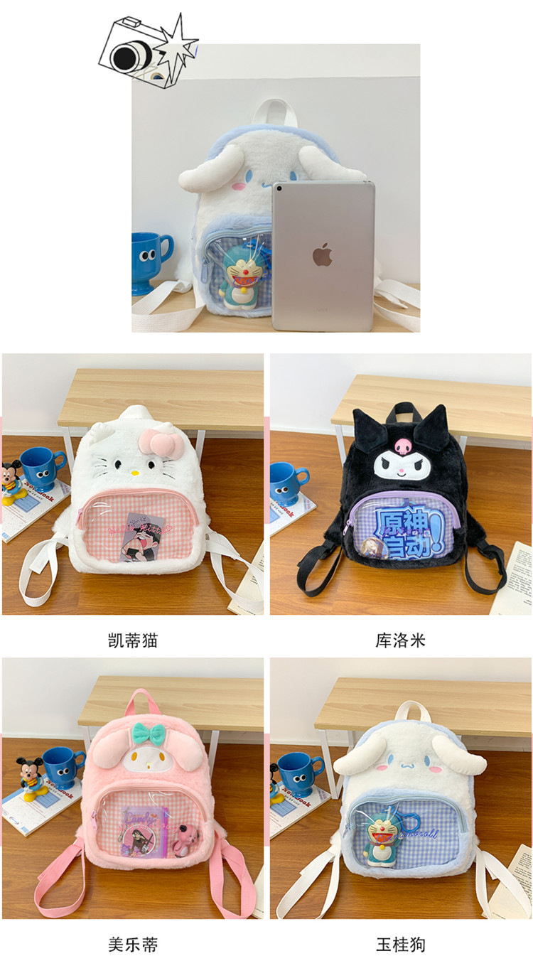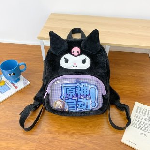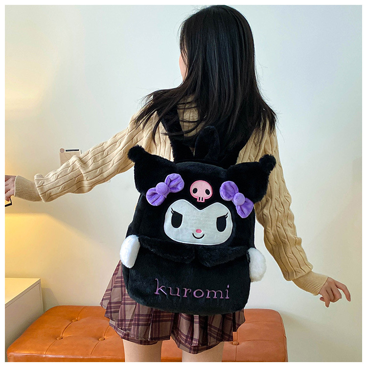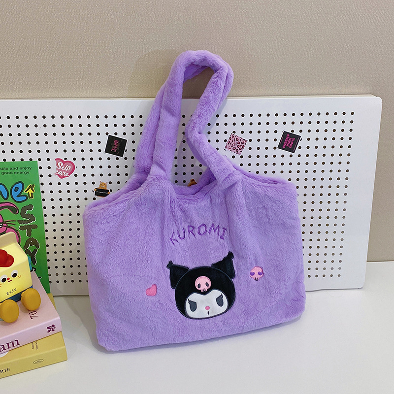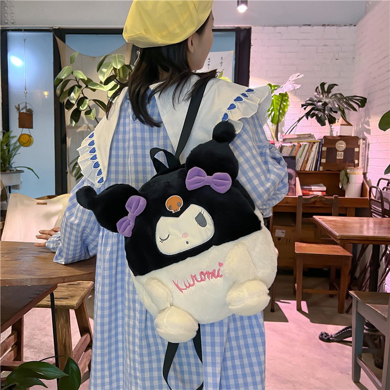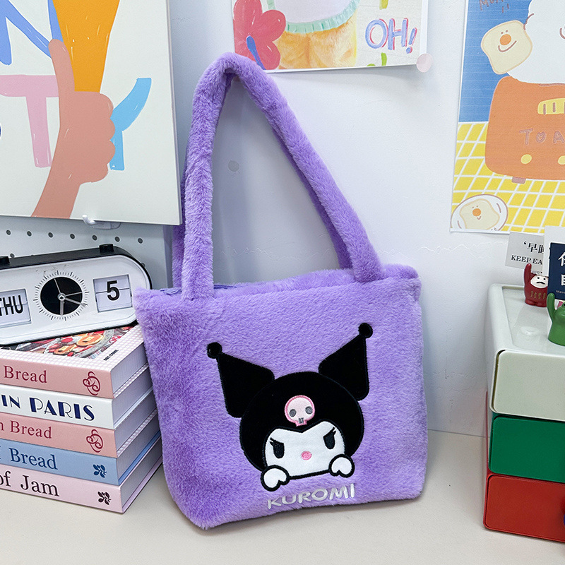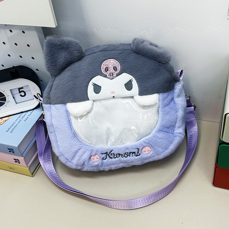 2025 새로운 만화 봉제 인형 어깨 크로스 바디 백 부드러운 귀여운 소녀 ins 귀여운 Kuromi 더블 백 여성용 가방스토어 가기