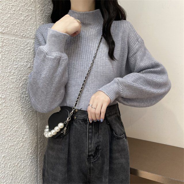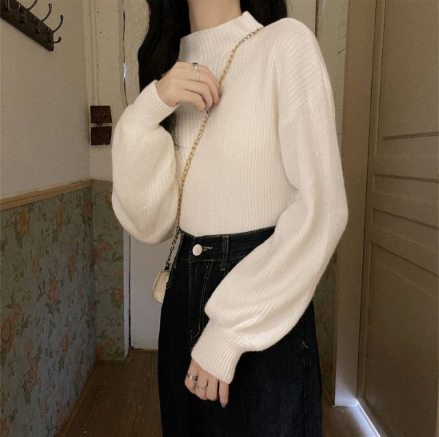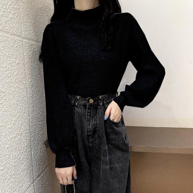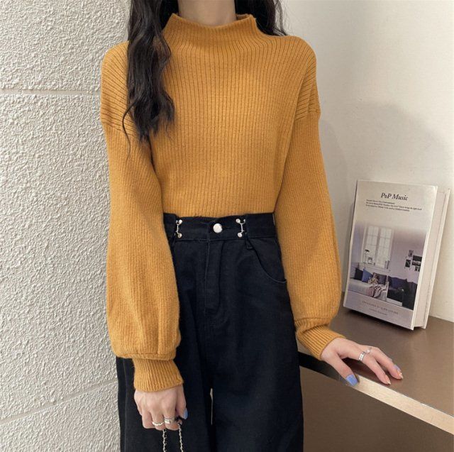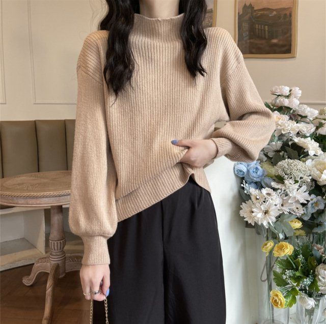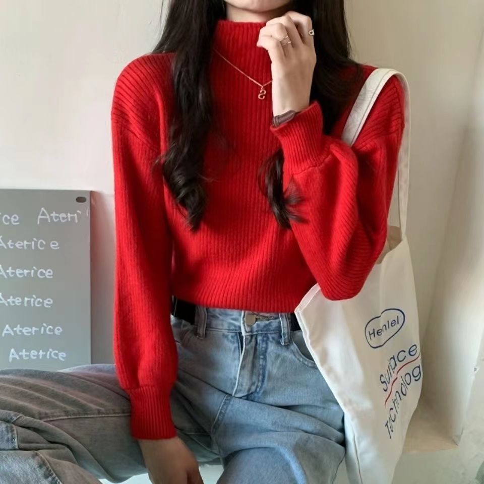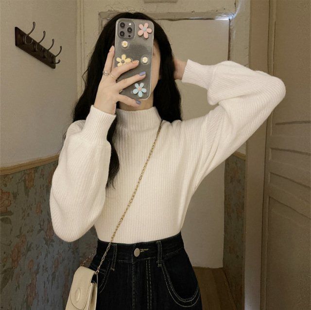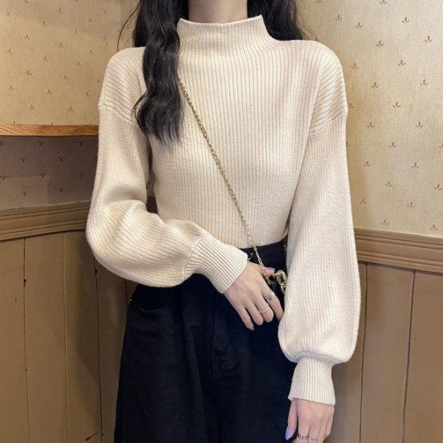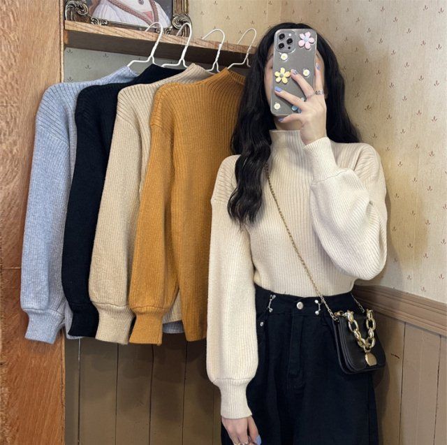 가을과 겨울에 스웨터 여성용 하프 하이 칼라 긴 소매 바닥 셔츠가 올해 인기가 있습니다. 아름다운 코트 가을 니트 작은 코트스토어 가기