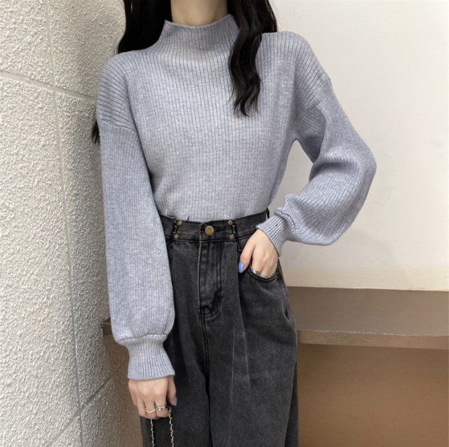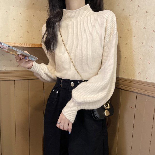 가을과 겨울에 스웨터 여성용 하프 하이 칼라 긴 소매 바닥 셔츠가 올해 인기가 있습니다. 아름다운 코트 가을 니트 작은 코트