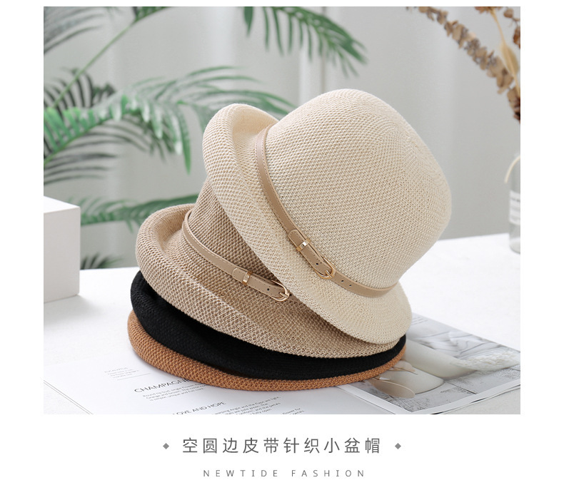 클래식 봄과 여름 니트 통기성 금속 벨트 버클 어부 모자 여성의 휴일 여행 차양 자외선 차단제 컬 캡스토어 가기