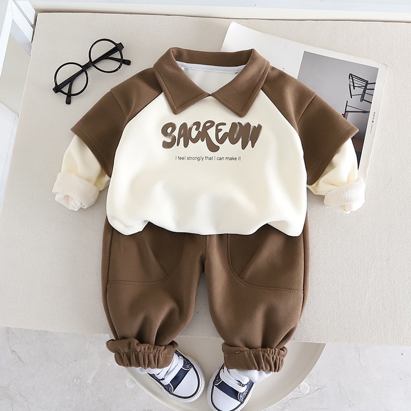 소년 아기 봄 가을 운동복 세트 1-2-3-4 세 여아 어린이 서양식 인터넷 연예인 봄 원피스 투피스 세트