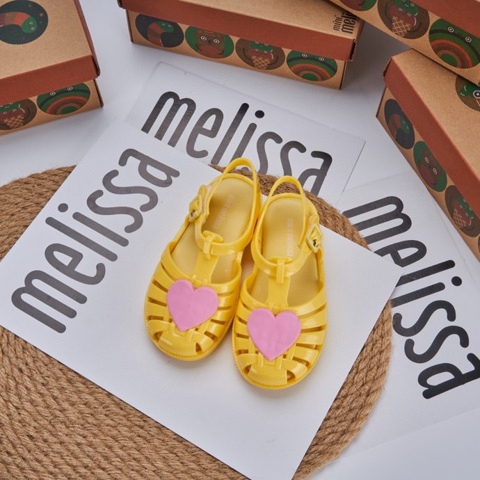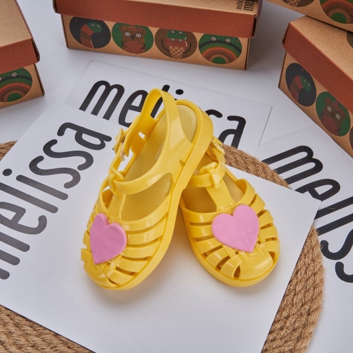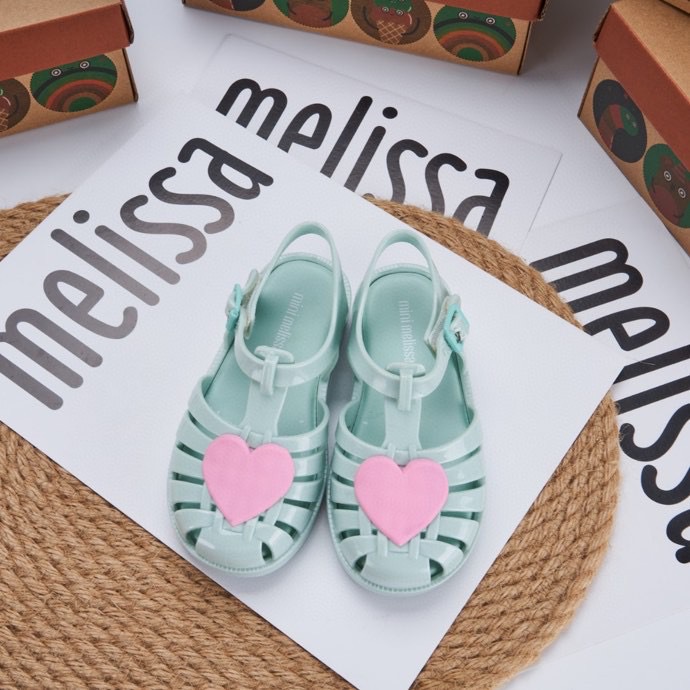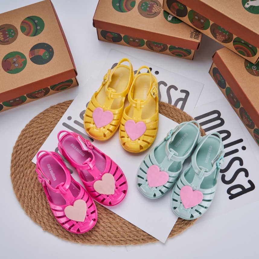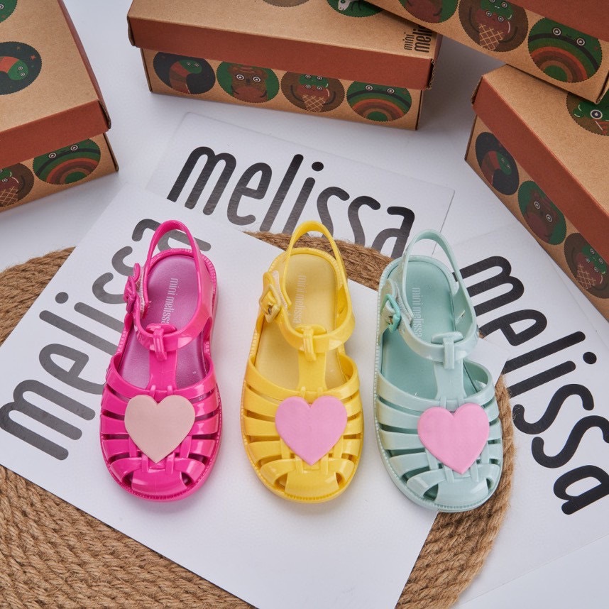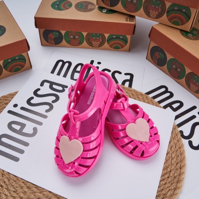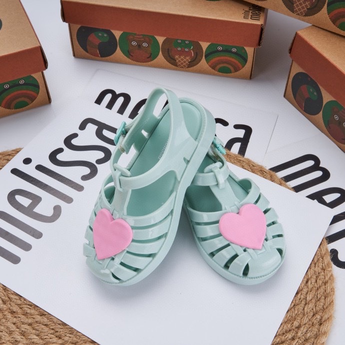 2023 melissa melissa 어린이 신발 Baotou 중공 사랑 로마 샌들 플랫 힐 샌들 여아 비치 슈즈
