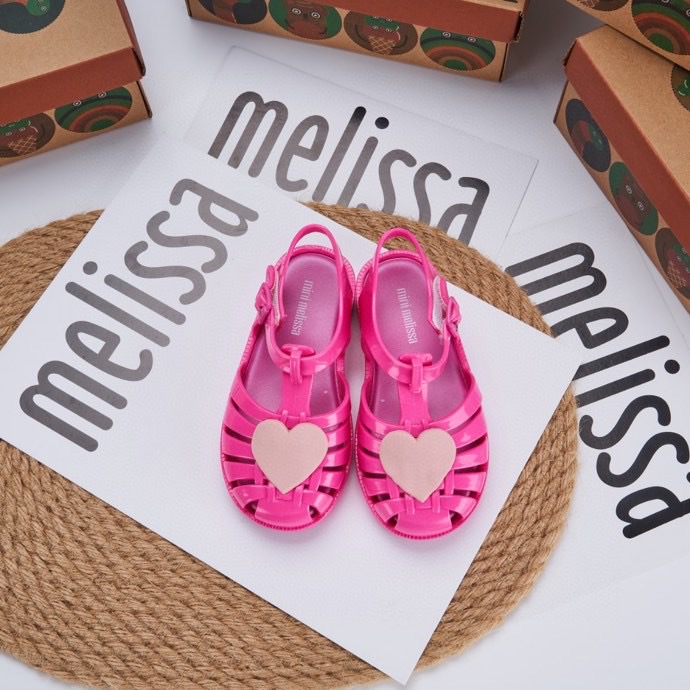 2023 melissa melissa 어린이 신발 Baotou 중공 사랑 로마 샌들 플랫 힐 샌들 여아 비치 슈즈스토어 가기