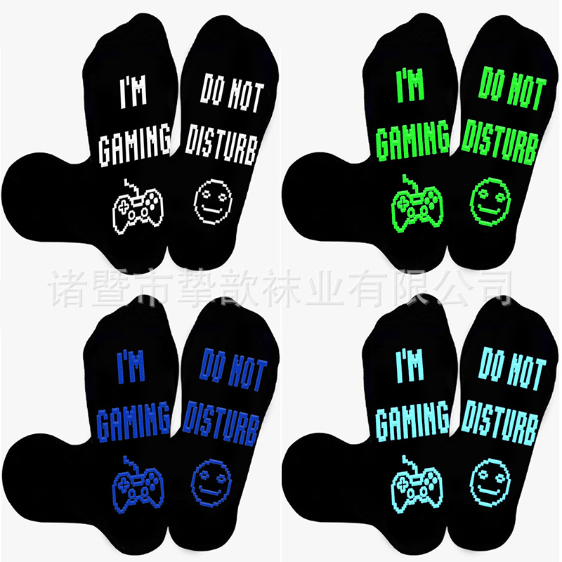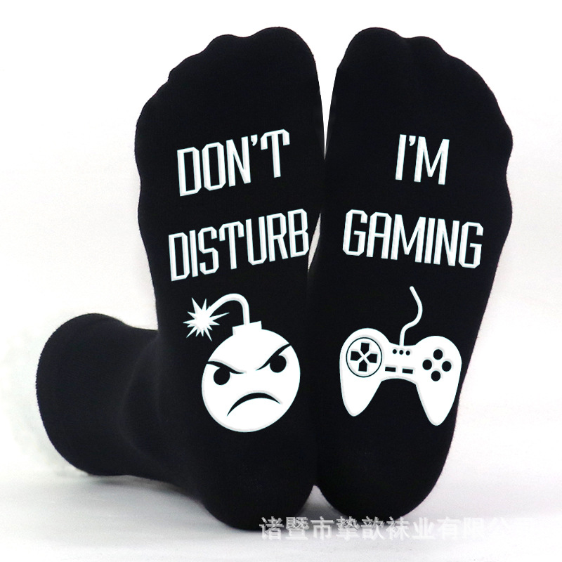 유럽과 미국의 국경 간 폭발 면화 튜브 양말 발 글자 미끄럼 방지 분배 바닥 양말 남성 및 여성 게임 양말