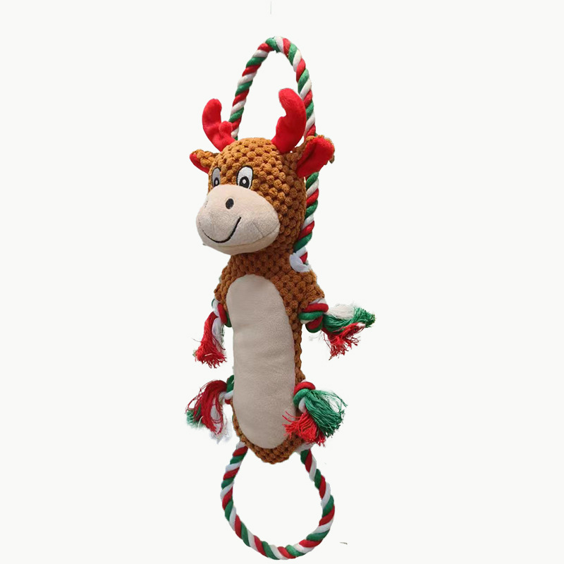크로스 보더 아마존 새로운 대화 형 크리스마스 선물 개 음성 끽끽 소리 물린 봉제 코튼 로프 장난감 남성스토어 가기