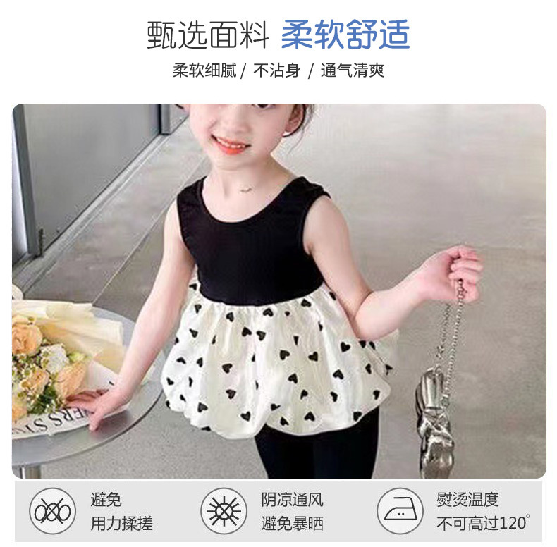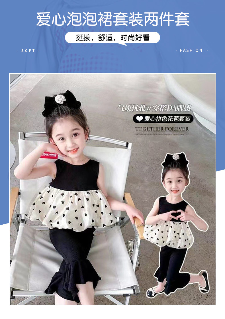 2023 여름 새로운 한국 스타일 여자 아이들의 유행 귀여운 캐주얼 느슨한 사랑 버블 원피스 세트 투피스 세트스토어 가기