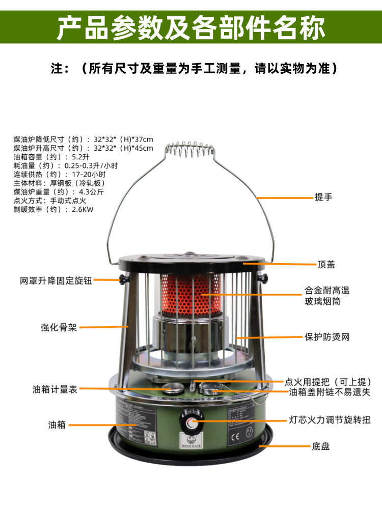 들어 올릴 수있는 등유 난방 스토브 가정용 야외 캠핑 바베큐 얼음 낚시 등유 난방 휴대용 스토브