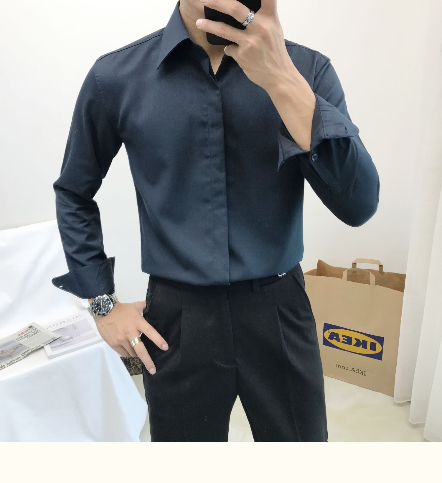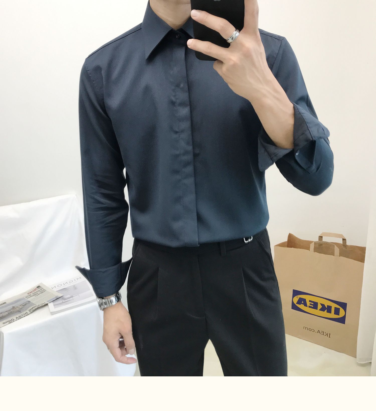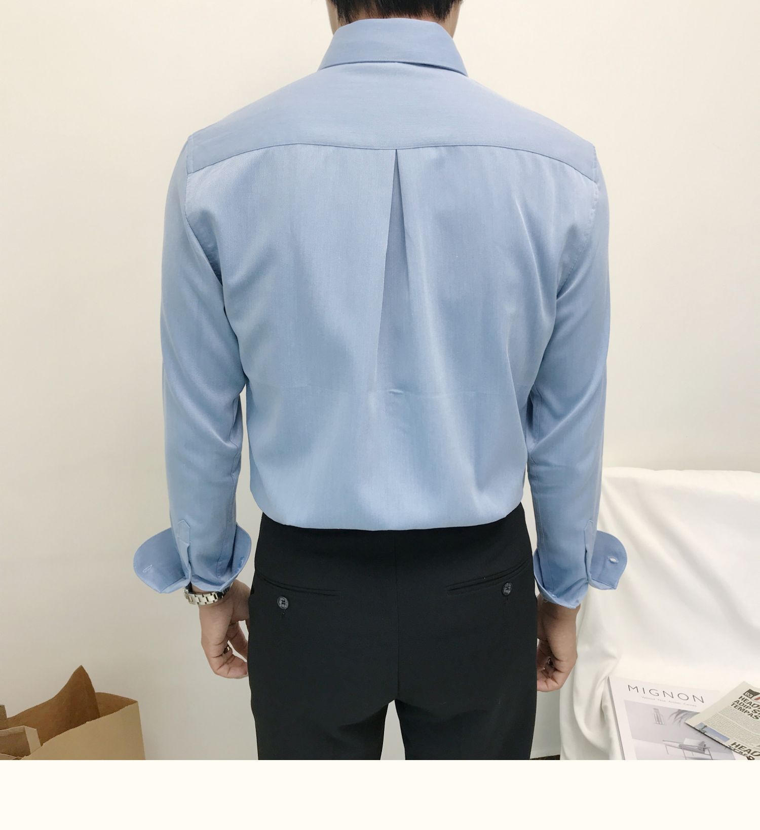 셔츠 남자의 봄과 가을 긴팔 한국 스타일 남자의 포인트 칼라 셔츠 비 다림질 주름 방지 비즈니스 정장 원피스 흰색 셔츠 남성용 다크 버튼스토어 가기