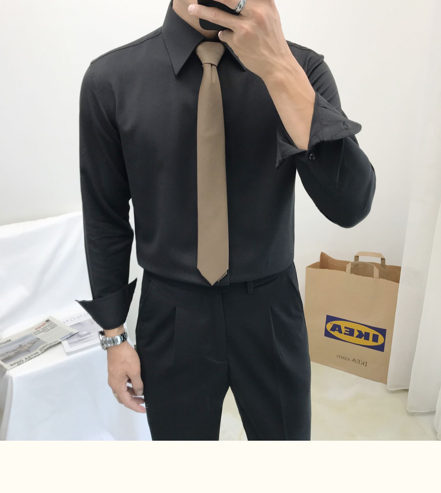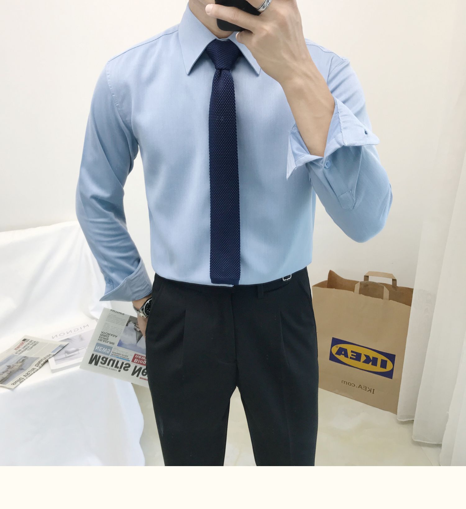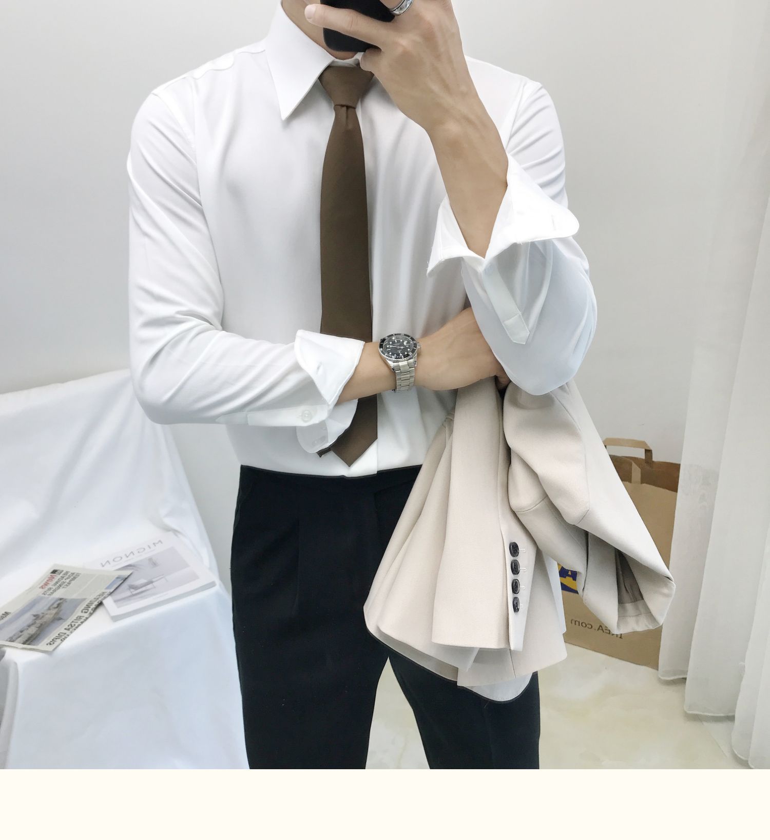 셔츠 남자의 봄과 가을 긴팔 한국 스타일 남자의 포인트 칼라 셔츠 비 다림질 주름 방지 비즈니스 정장 원피스 흰색 셔츠 남성용 다크 버튼스토어 가기