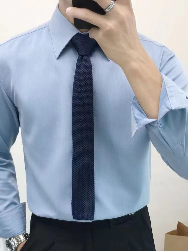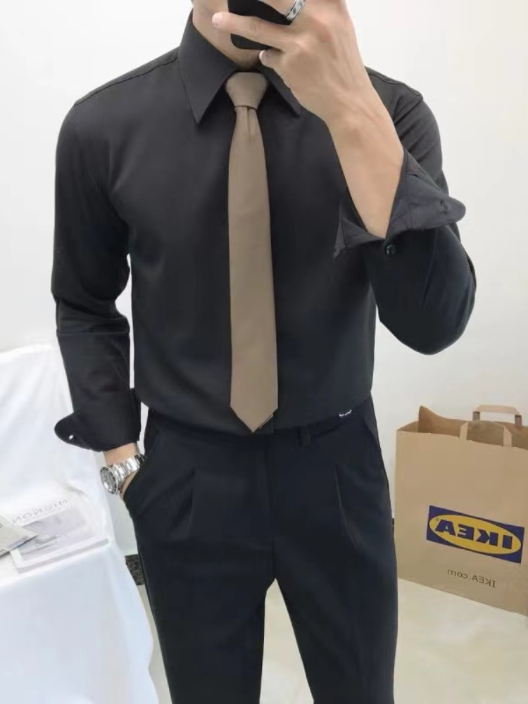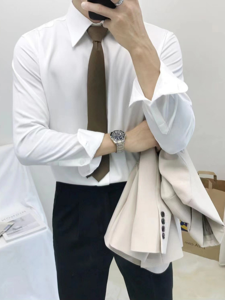 셔츠 남자의 봄과 가을 긴팔 한국 스타일 남자의 포인트 칼라 셔츠 비 다림질 주름 방지 비즈니스 정장 원피스 흰색 셔츠 남성용 다크 버튼