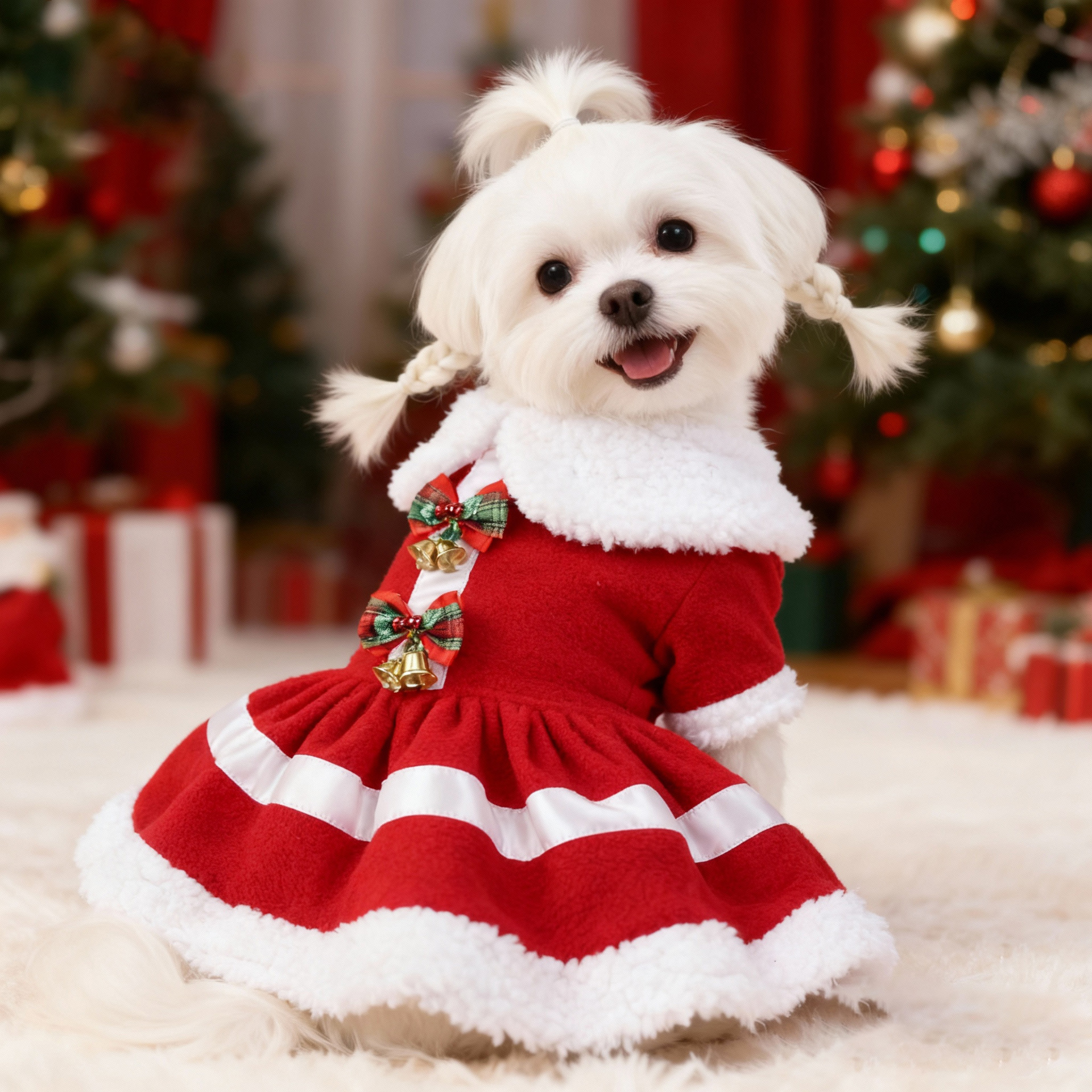 크로스 보더에 대 한 크리스마스 애완 동물 의상 산타 클로스 빨간 종 두꺼운 인형 칼라 원피스스토어 가기