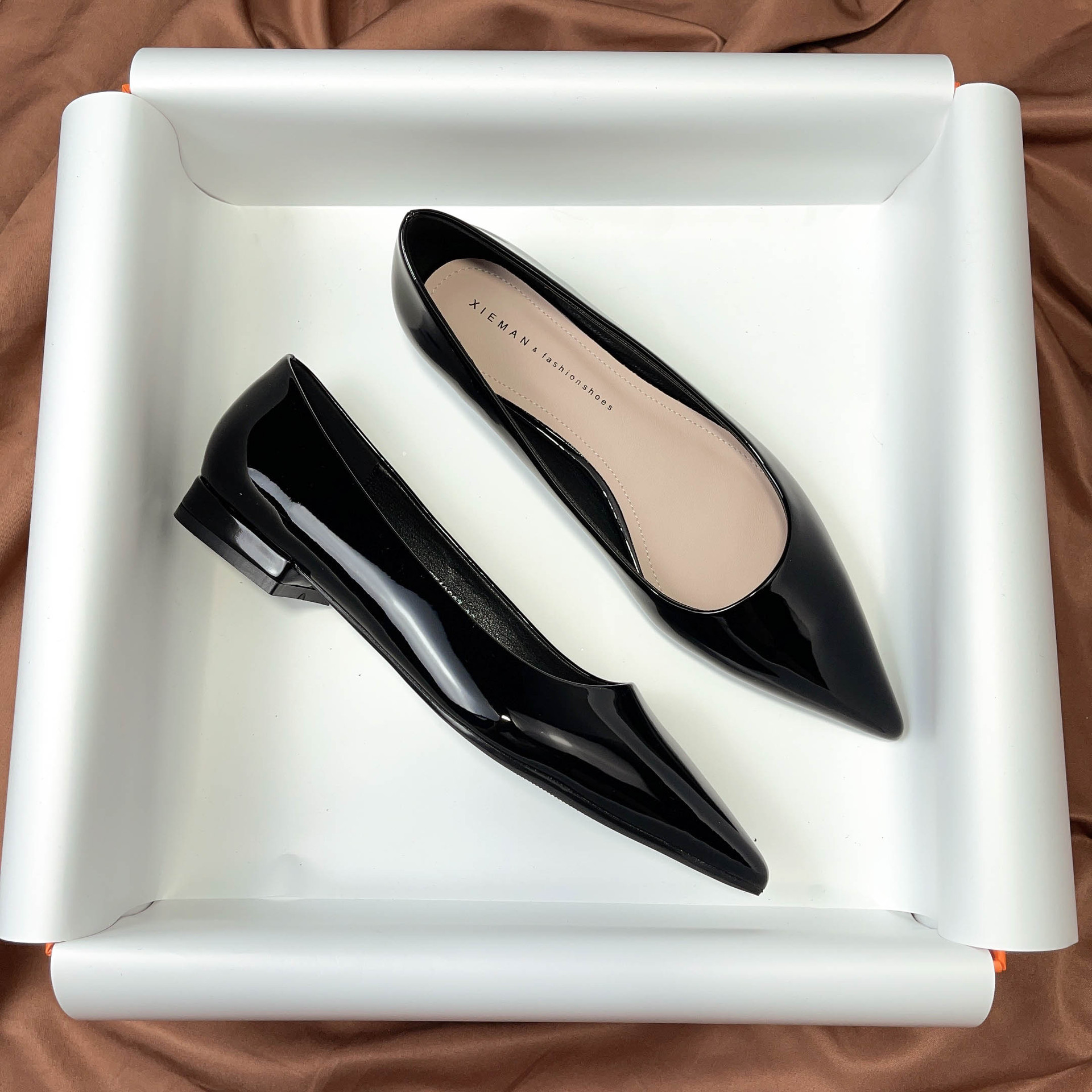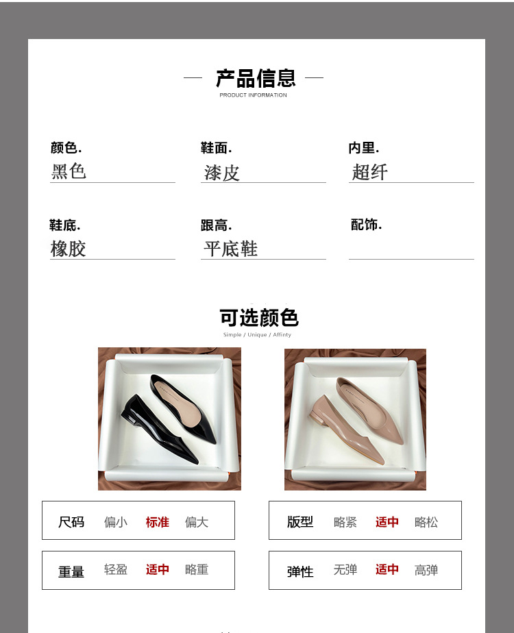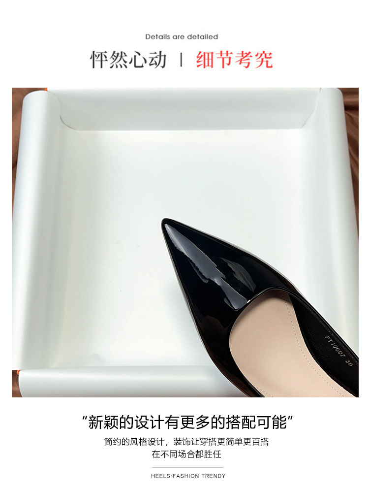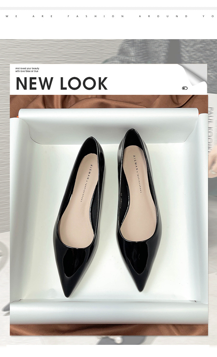 19607 블랙 페이턴트 가죽 전문 플랫 슈즈 여성용 여름 소프트 솔 2023 새로운 모든 매치 뾰족한 발가락 얕은 입스토어 가기