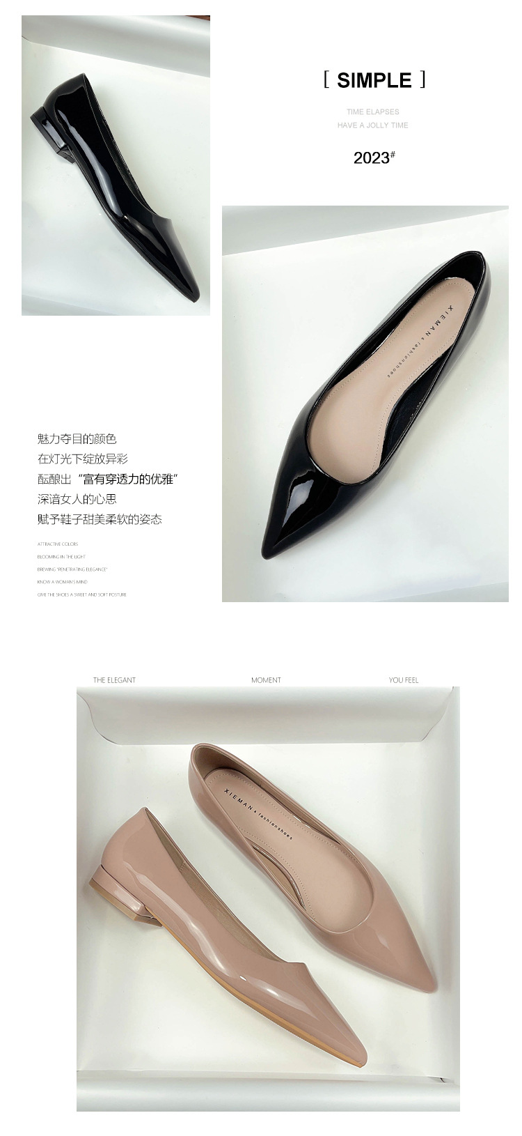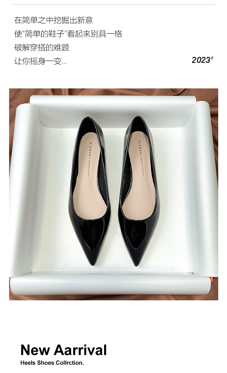 19607 블랙 페이턴트 가죽 전문 플랫 슈즈 여성용 여름 소프트 솔 2023 새로운 모든 매치 뾰족한 발가락 얕은 입