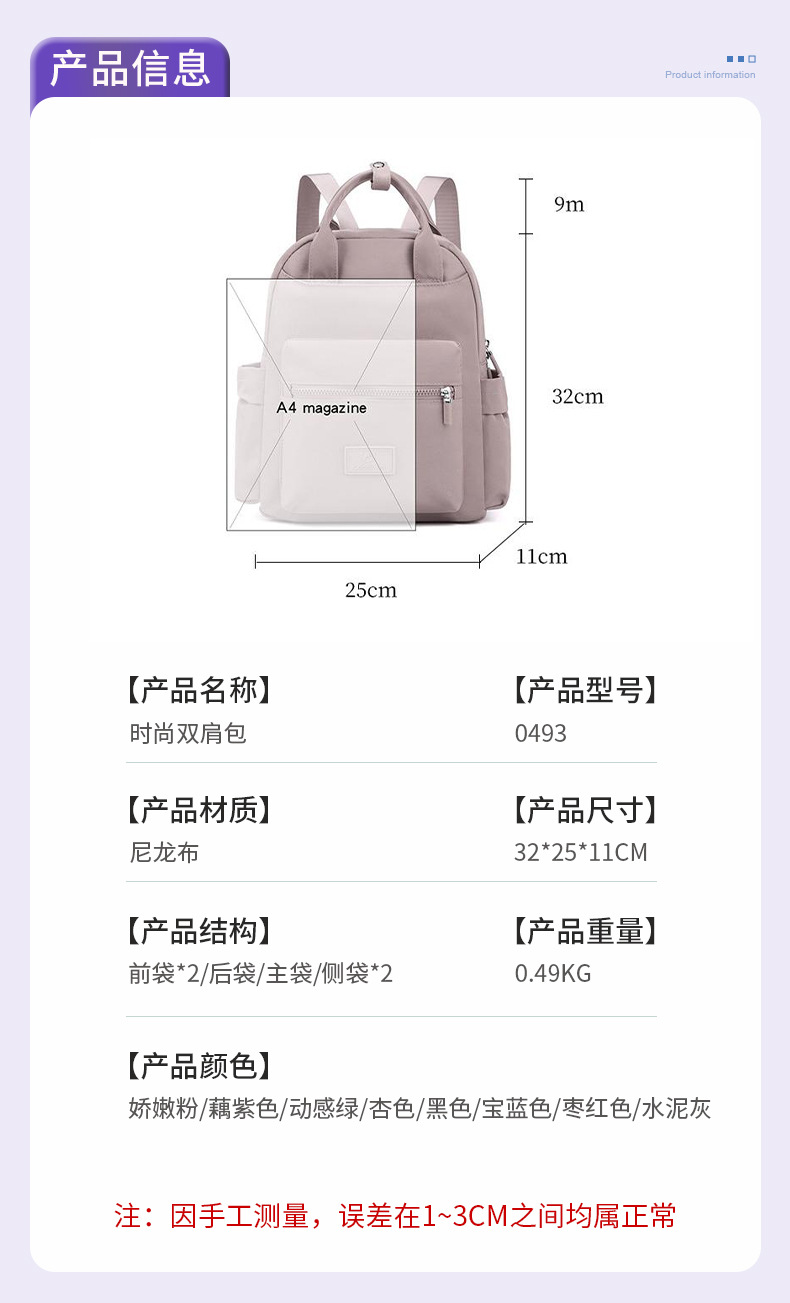 나일론 천 배낭 새로운 유행 다기능 배낭 캐주얼 여행 대용량 편리한 통근 여행 배낭