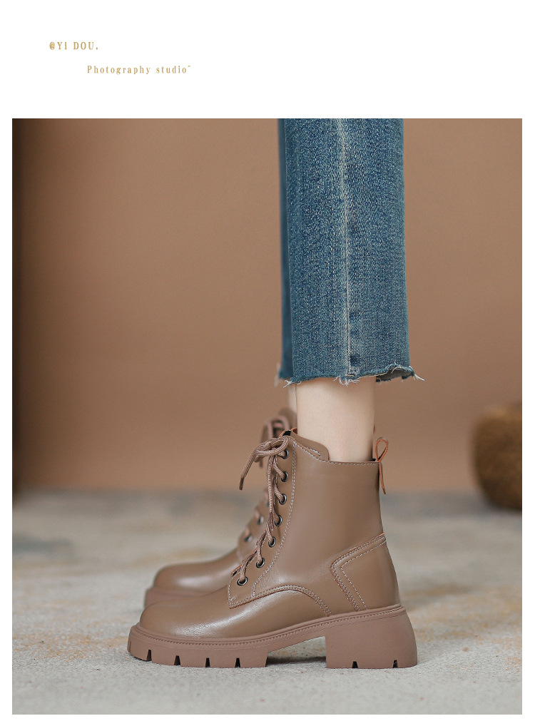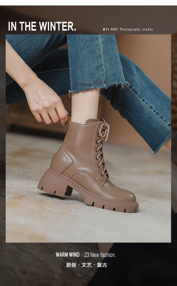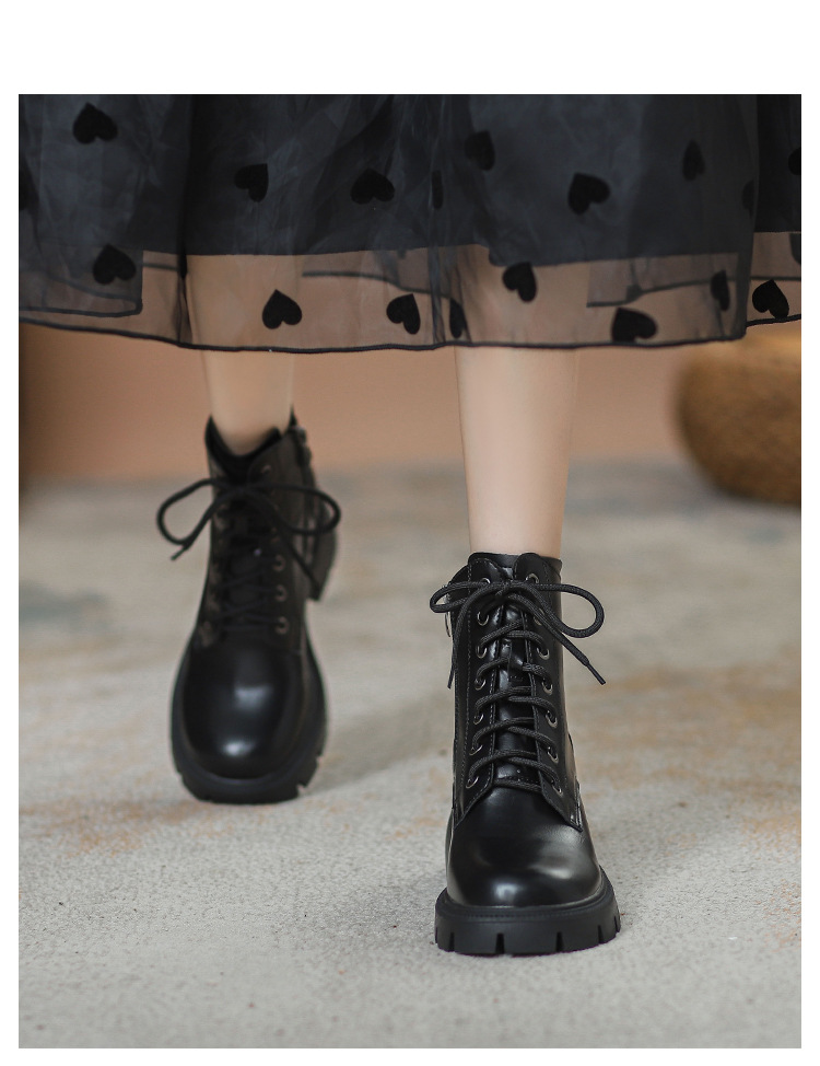 마틴 부츠 여성용 영국 스타일 2025 신상 가을 겨울 플러스 사이즈 레이스업 키높이 숏부츠