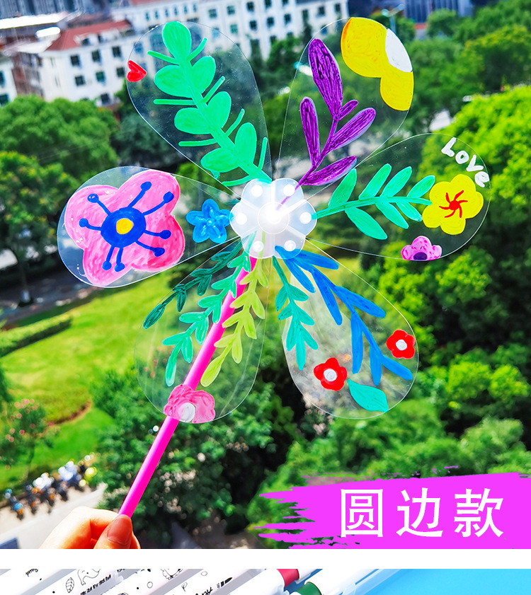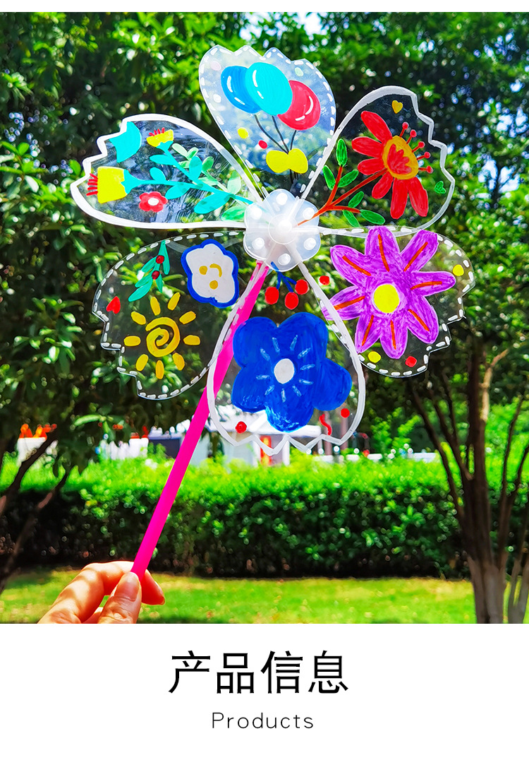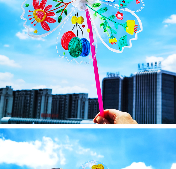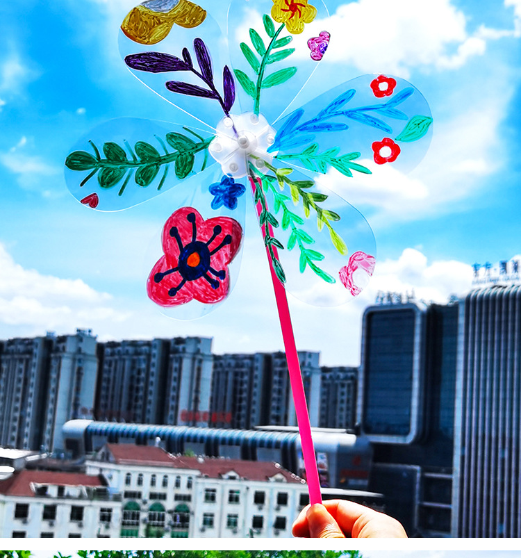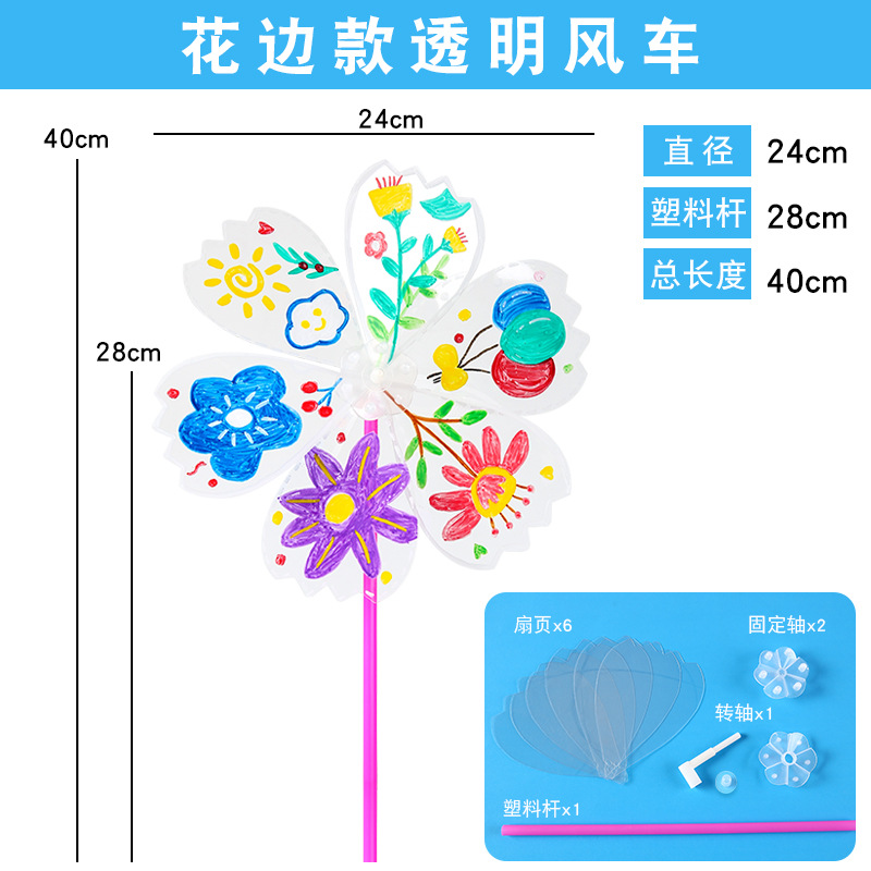어린이 DIY 낙서 투명 풍차 PVC 투명 손으로 그린 풍차 창조적 인 그림 여름 그림 낙서 장난감