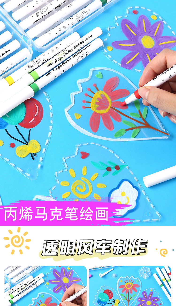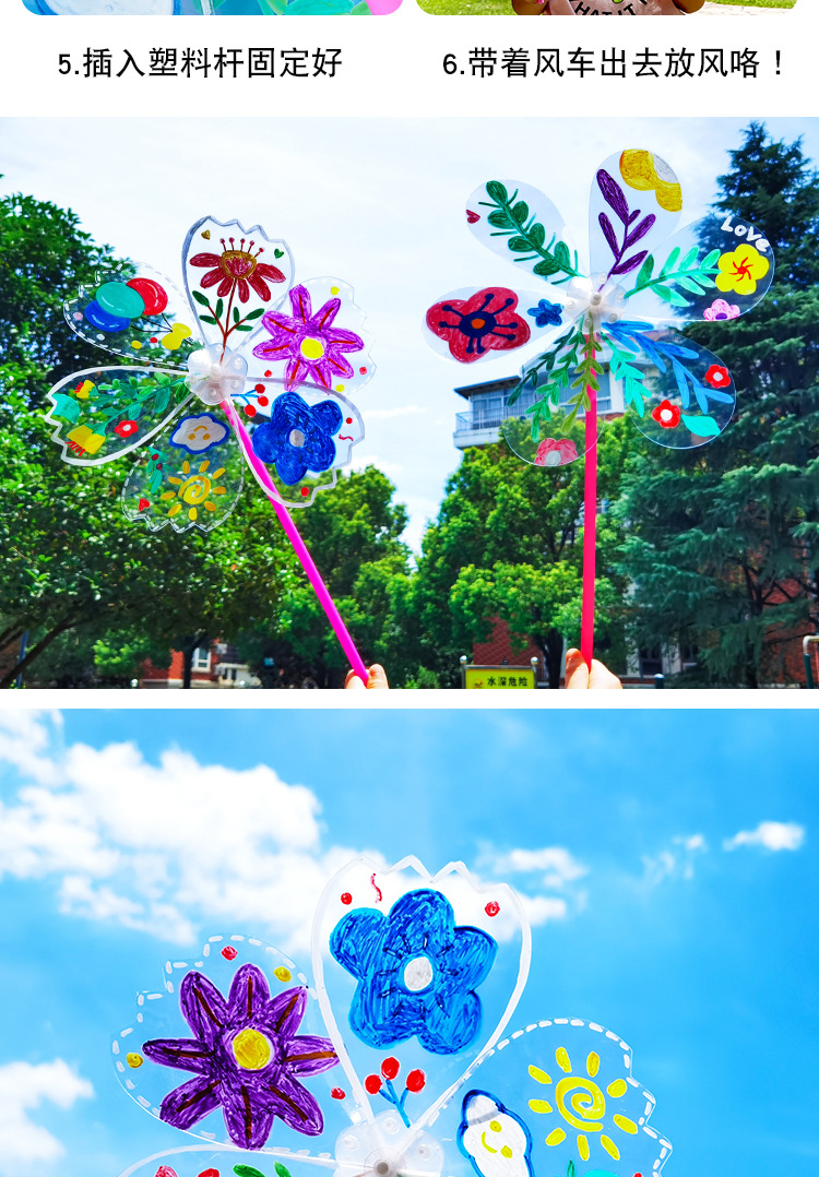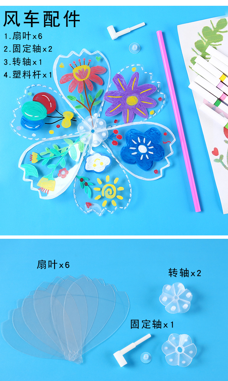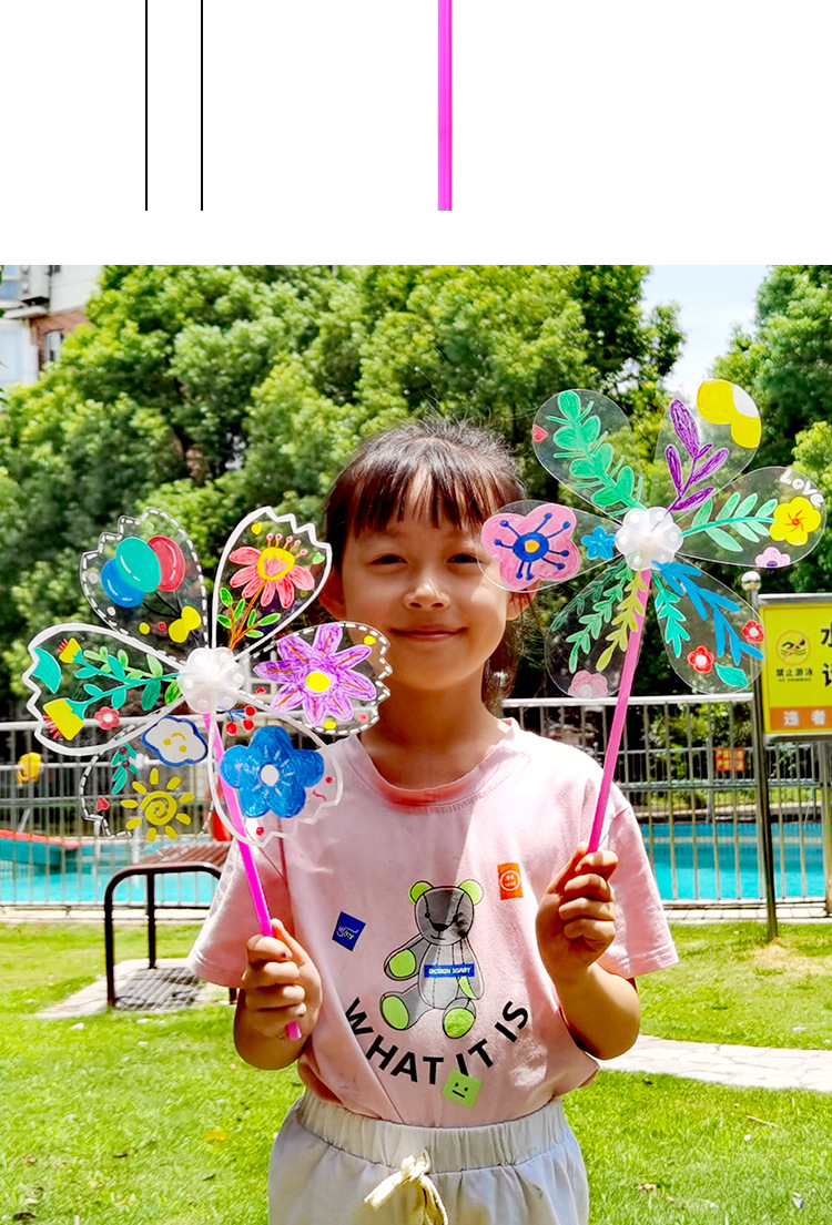 어린이 DIY 낙서 투명 풍차 PVC 투명 손으로 그린 풍차 창조적 인 그림 여름 그림 낙서 장난감