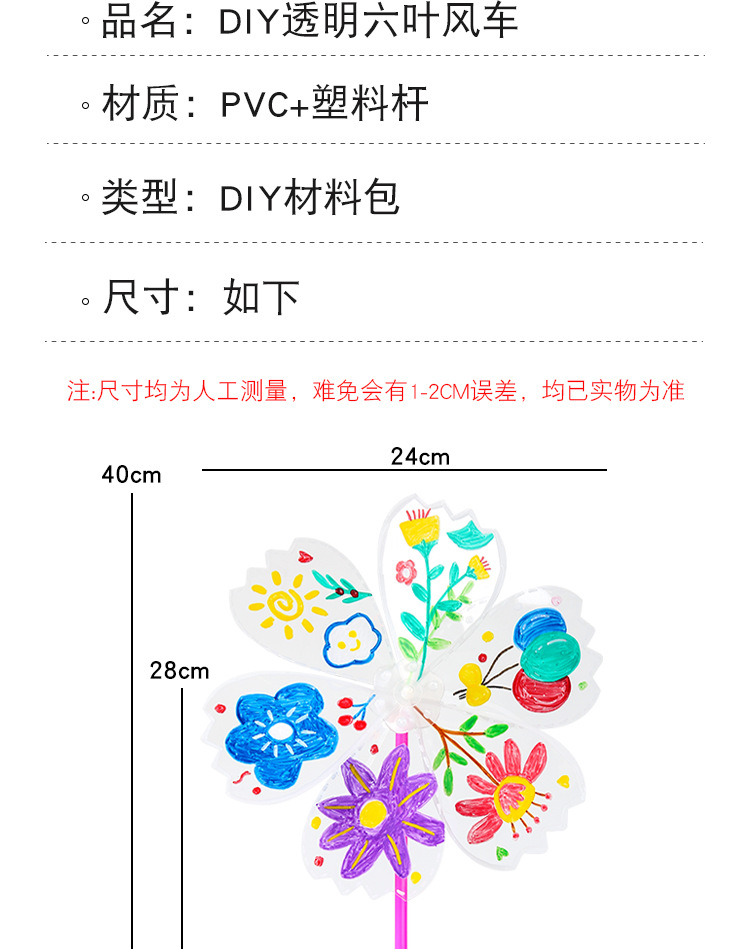 어린이 DIY 낙서 투명 풍차 PVC 투명 손으로 그린 풍차 창조적 인 그림 여름 그림 낙서 장난감스토어 가기