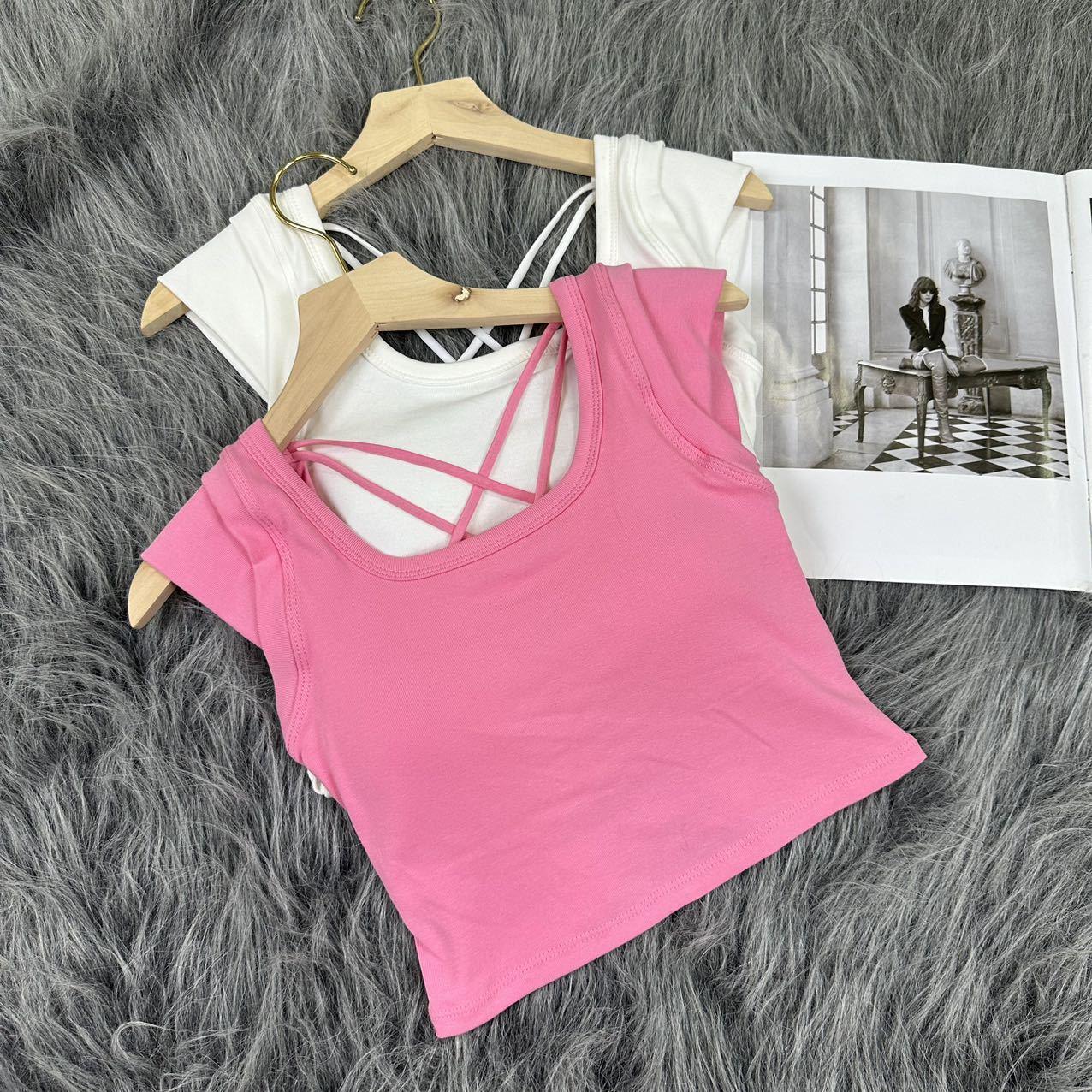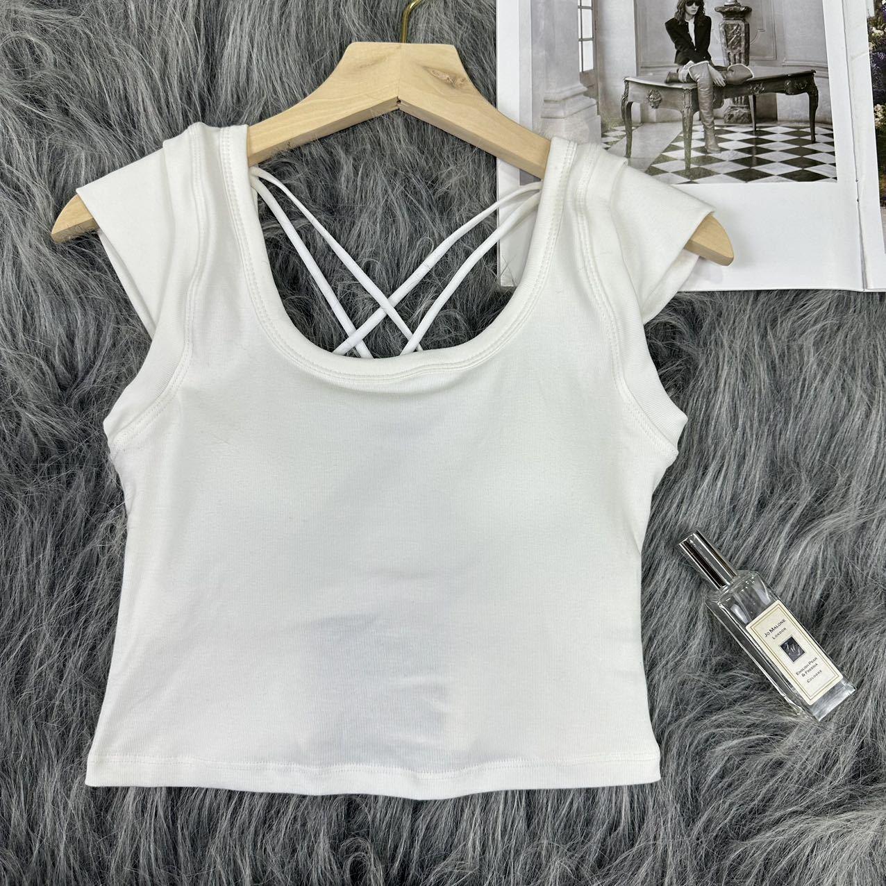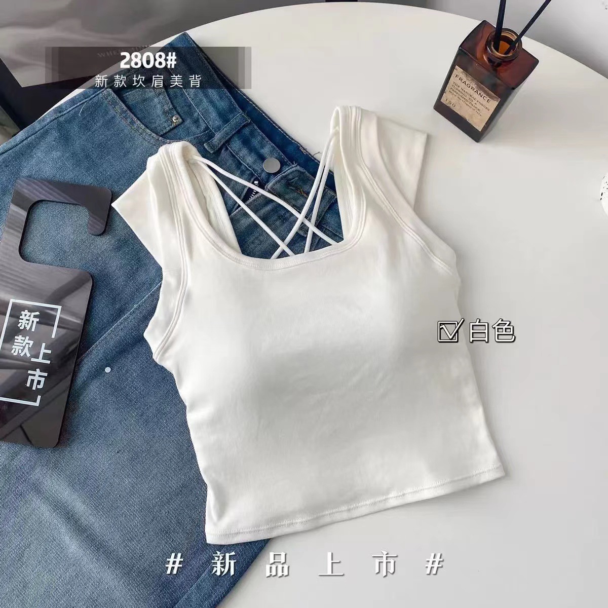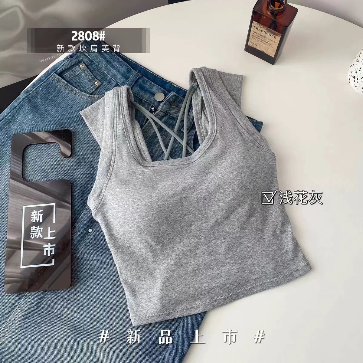 폭발성 도파민 소형 플라이 슬리브 중공 조끼 크로스 백리스 쇼트 가슴 패드 양복 조끼 여성