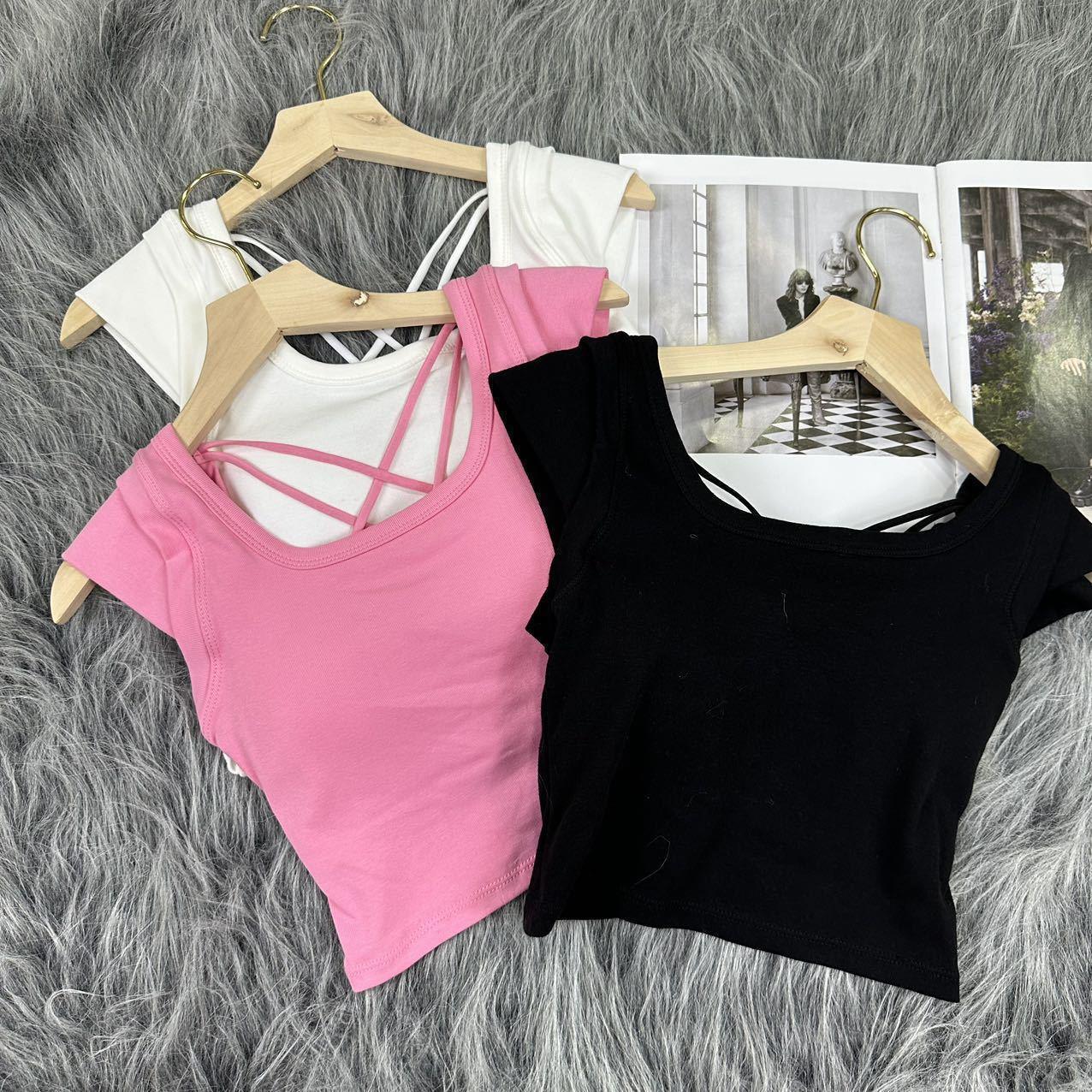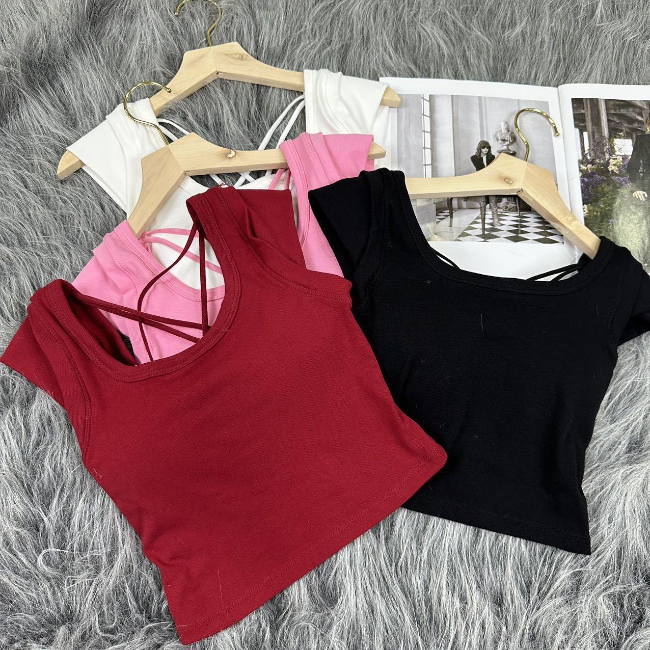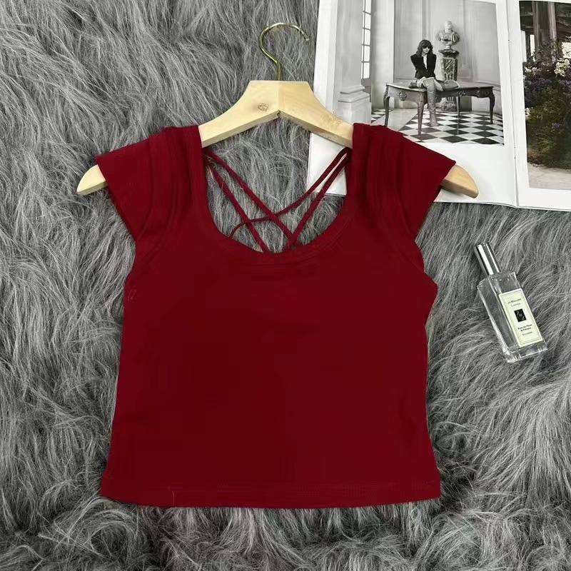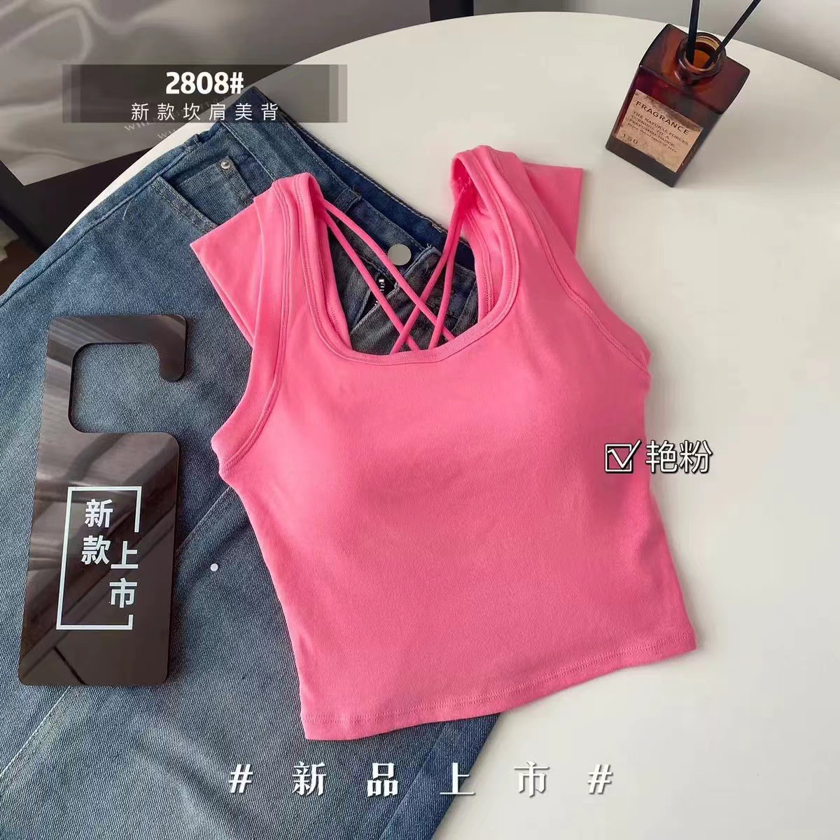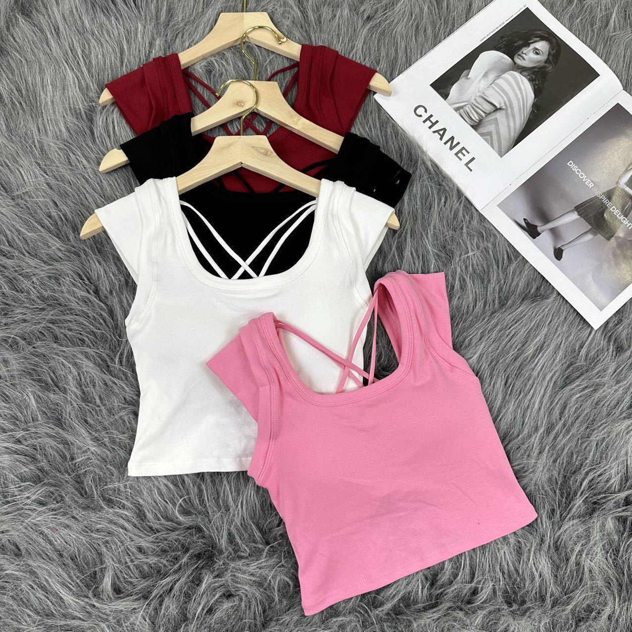 폭발성 도파민 소형 플라이 슬리브 중공 조끼 크로스 백리스 쇼트 가슴 패드 양복 조끼 여성