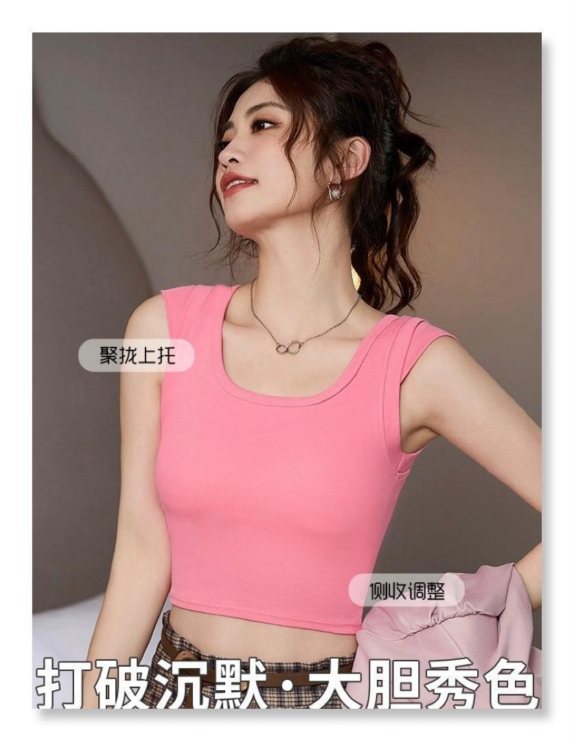 폭발성 도파민 소형 플라이 슬리브 중공 조끼 크로스 백리스 쇼트 가슴 패드 양복 조끼 여성스토어 가기