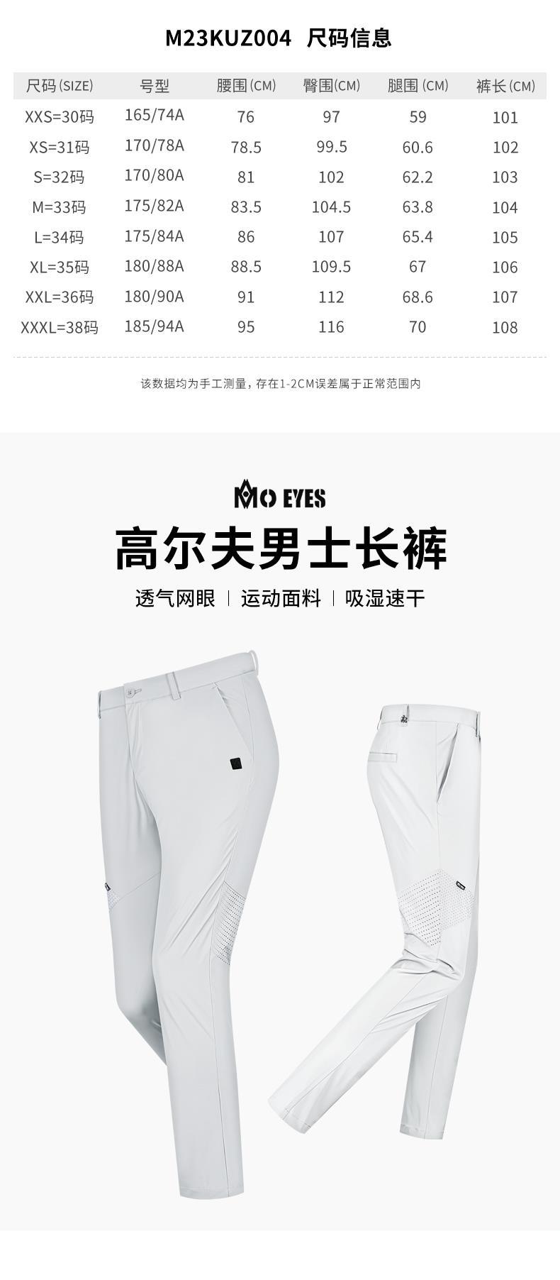 MO EYES 매직 아이 골프 바지 남성용 여름 바지 통기성 구멍 수분 흡수 속건 스포츠 바지
