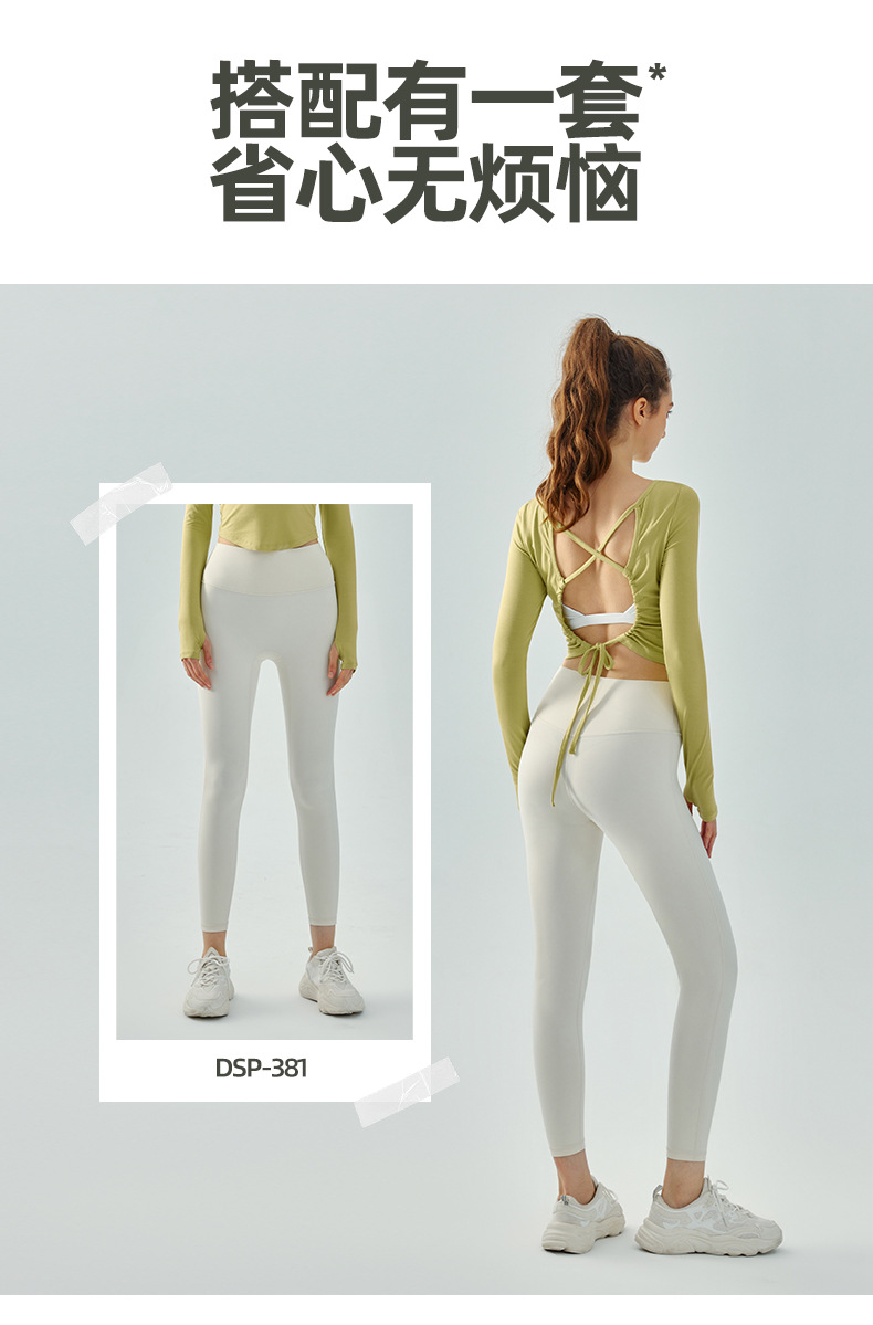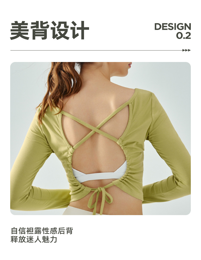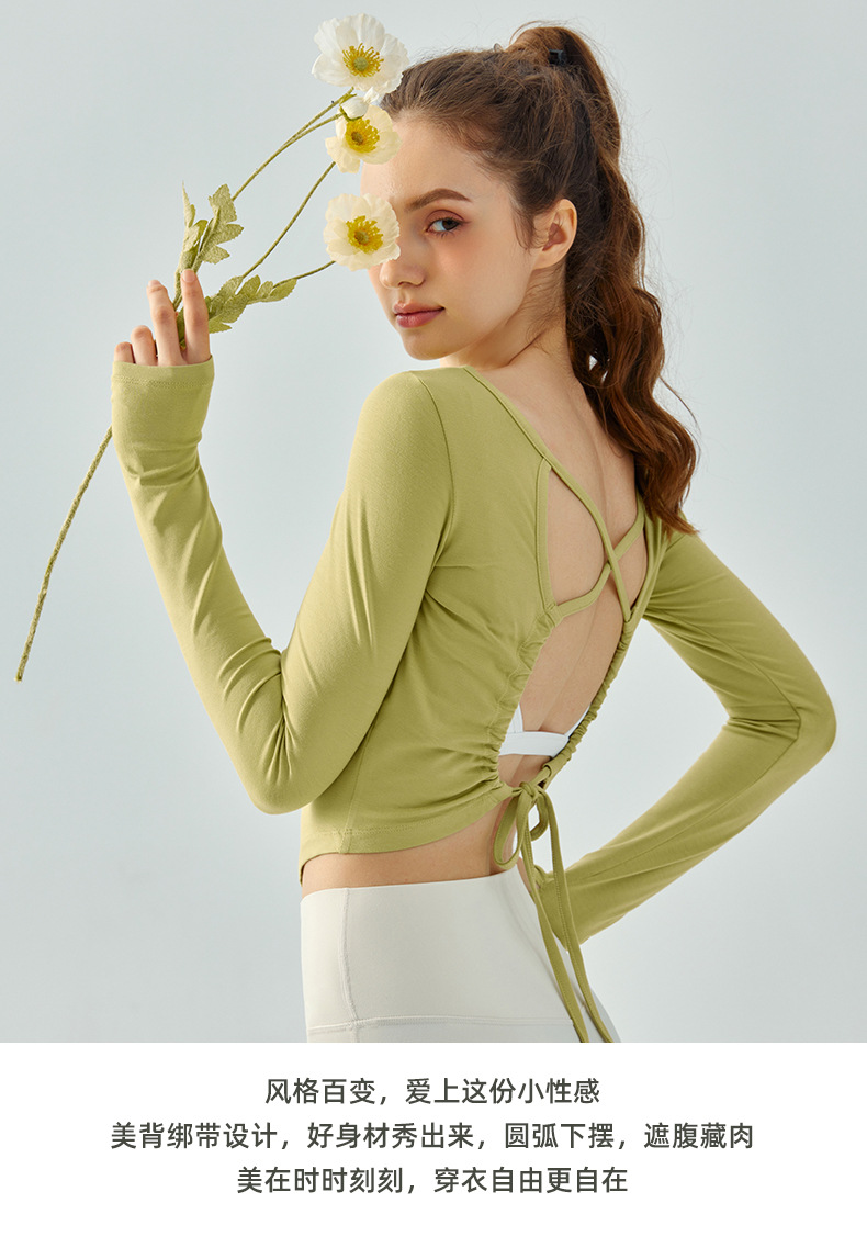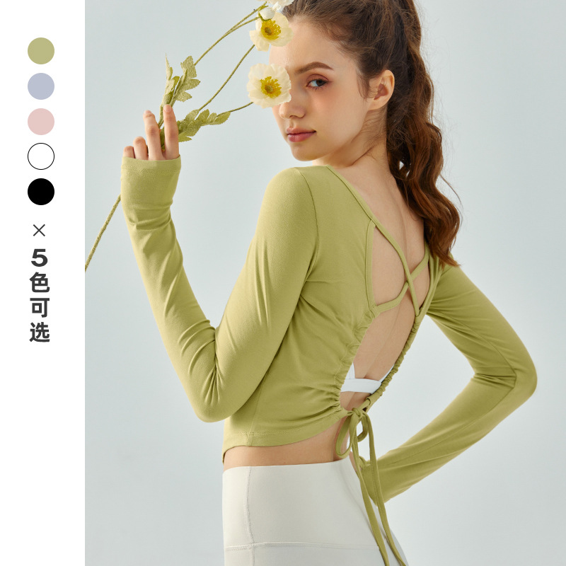 Dashu 요가 세트 긴팔 단색 느슨한 슬림핏 스포츠 탑 가을과 겨울 호 밑단 아름다운 등 통기성 피트니스 세트