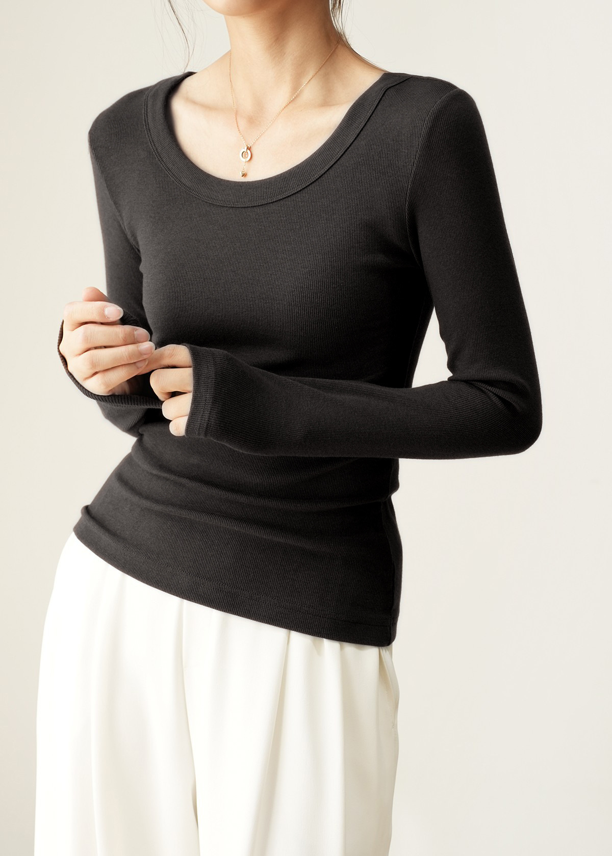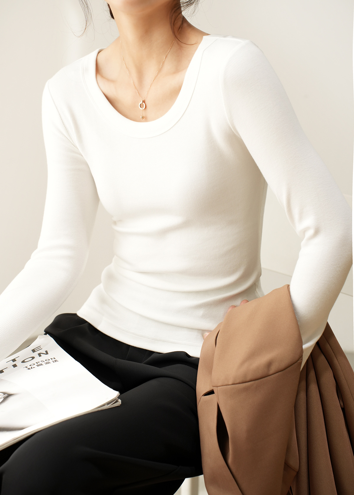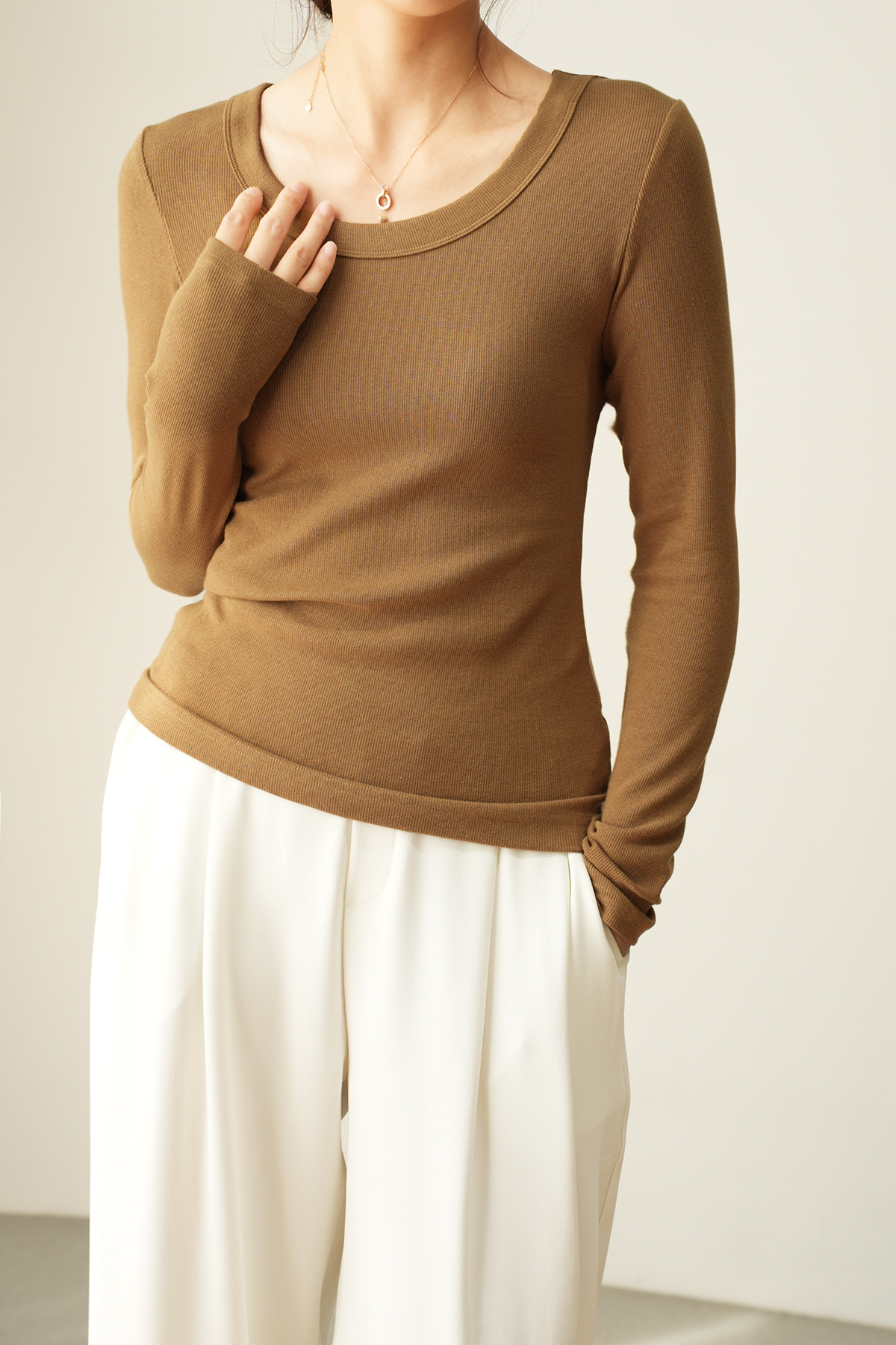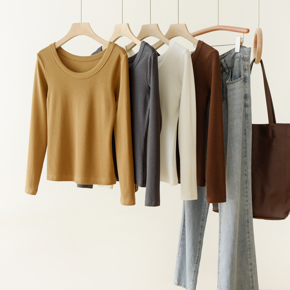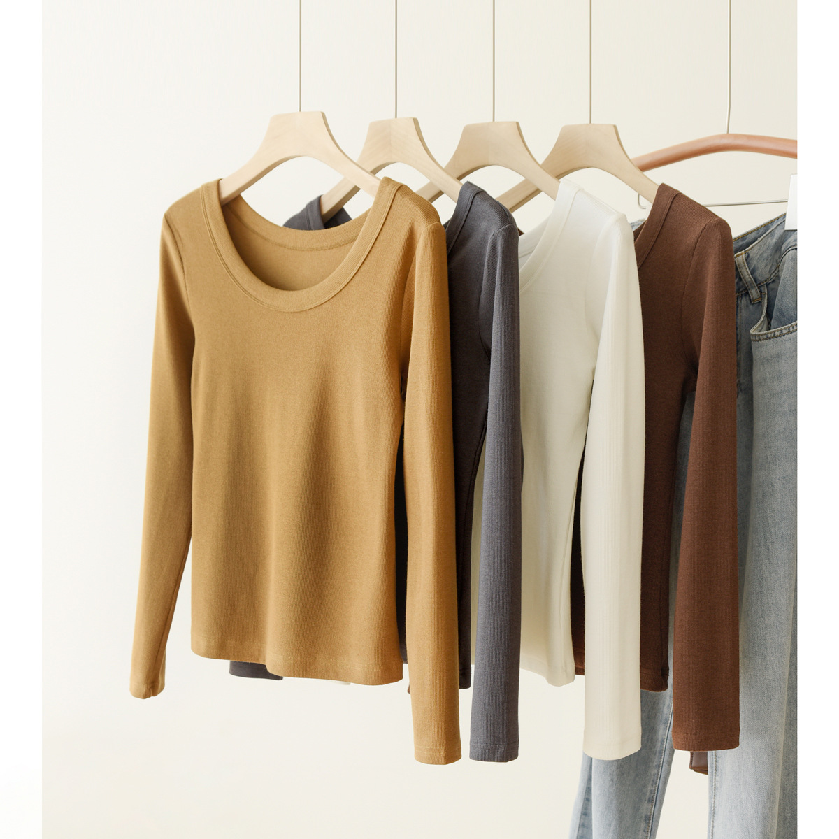 선택 순수 코튼 U 넥 티셔츠 여성 긴팔 2025 가을 새로운 느슨한 슬리밍 하이 엔드 티셔츠 탑 바닥 셔츠스토어 가기