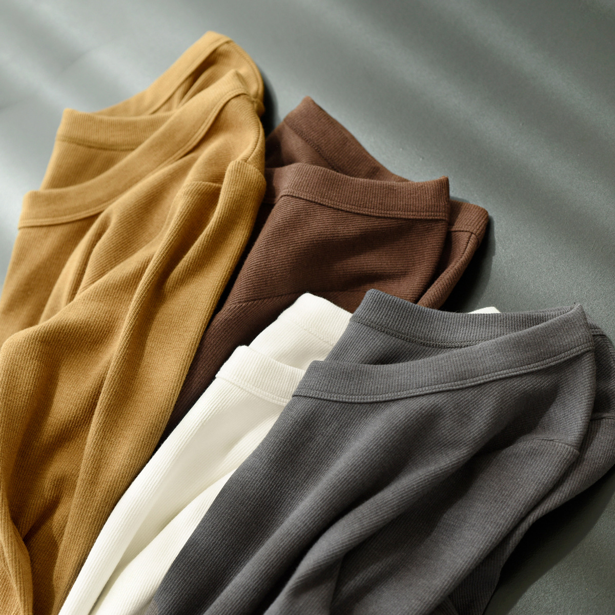 선택 순수 코튼 U 넥 티셔츠 여성 긴팔 2025 가을 새로운 느슨한 슬리밍 하이 엔드 티셔츠 탑 바닥 셔츠