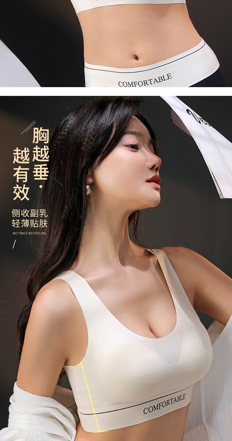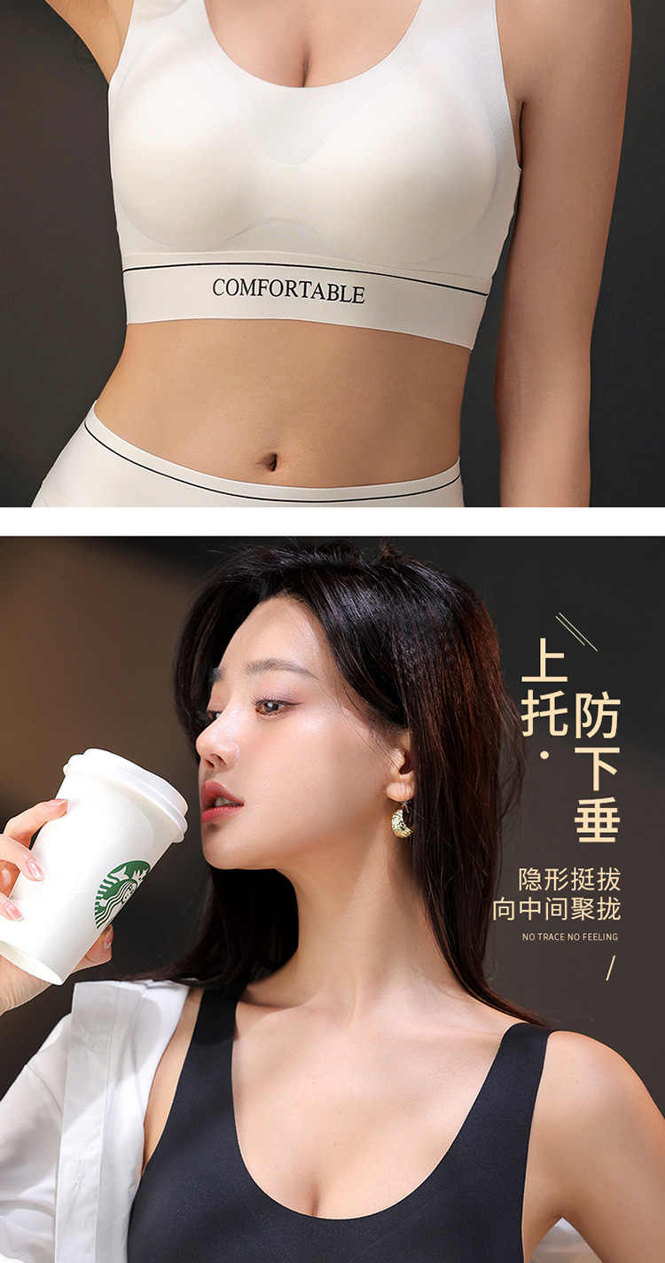 원활한 스포츠 속옷 푸시 업 수집기 유방 처짐 방지 원피스 아름다운 등 무테 브래지어 고정 컵스토어 가기