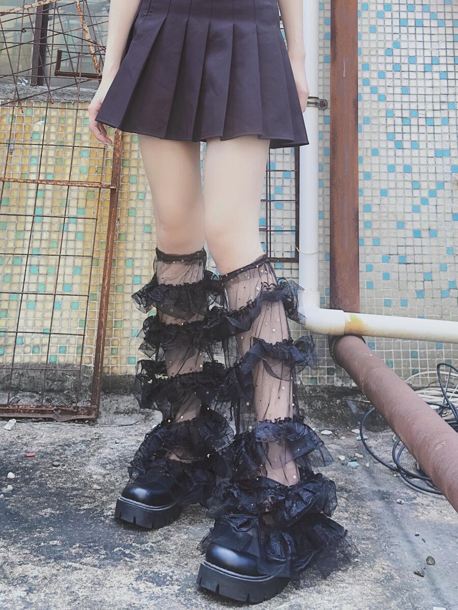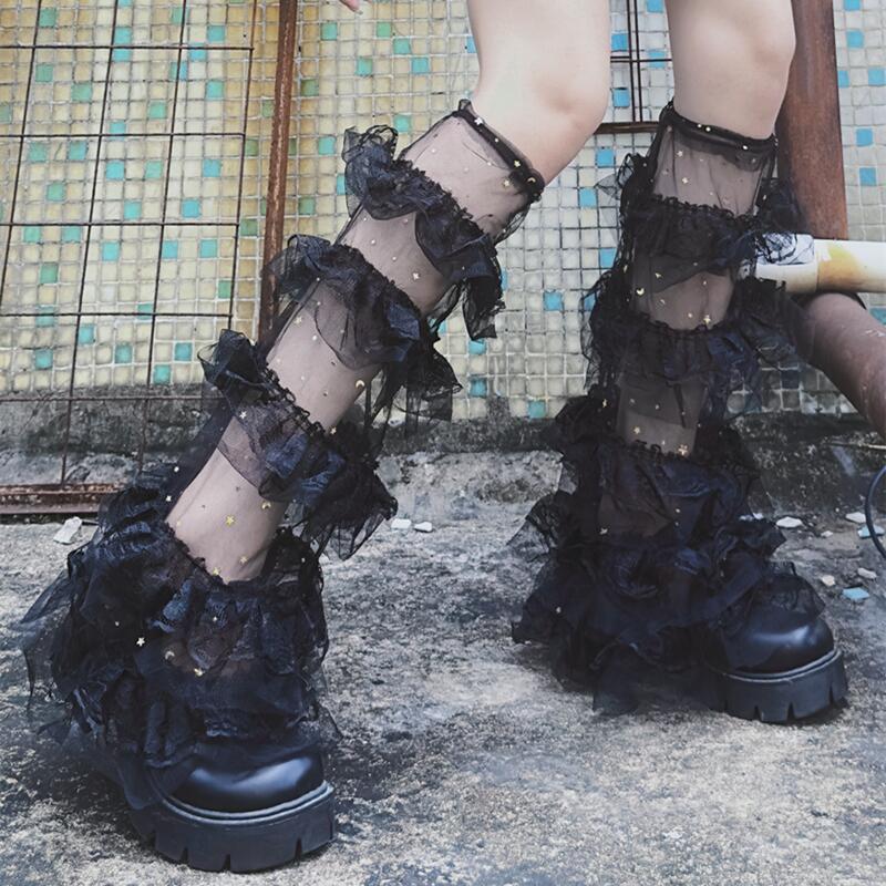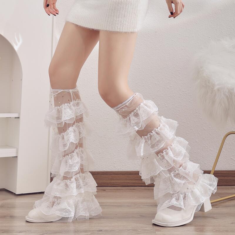 빈티지 로리타 레이스 다리 양말 중공 메쉬 스태킹 양말 여성용 일본식 봄과 여름 뿔 다리 슬리브스토어 가기