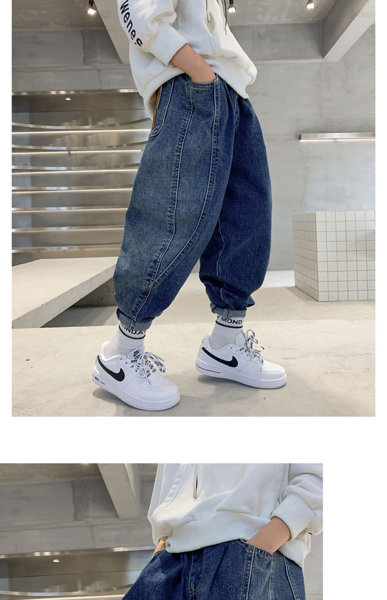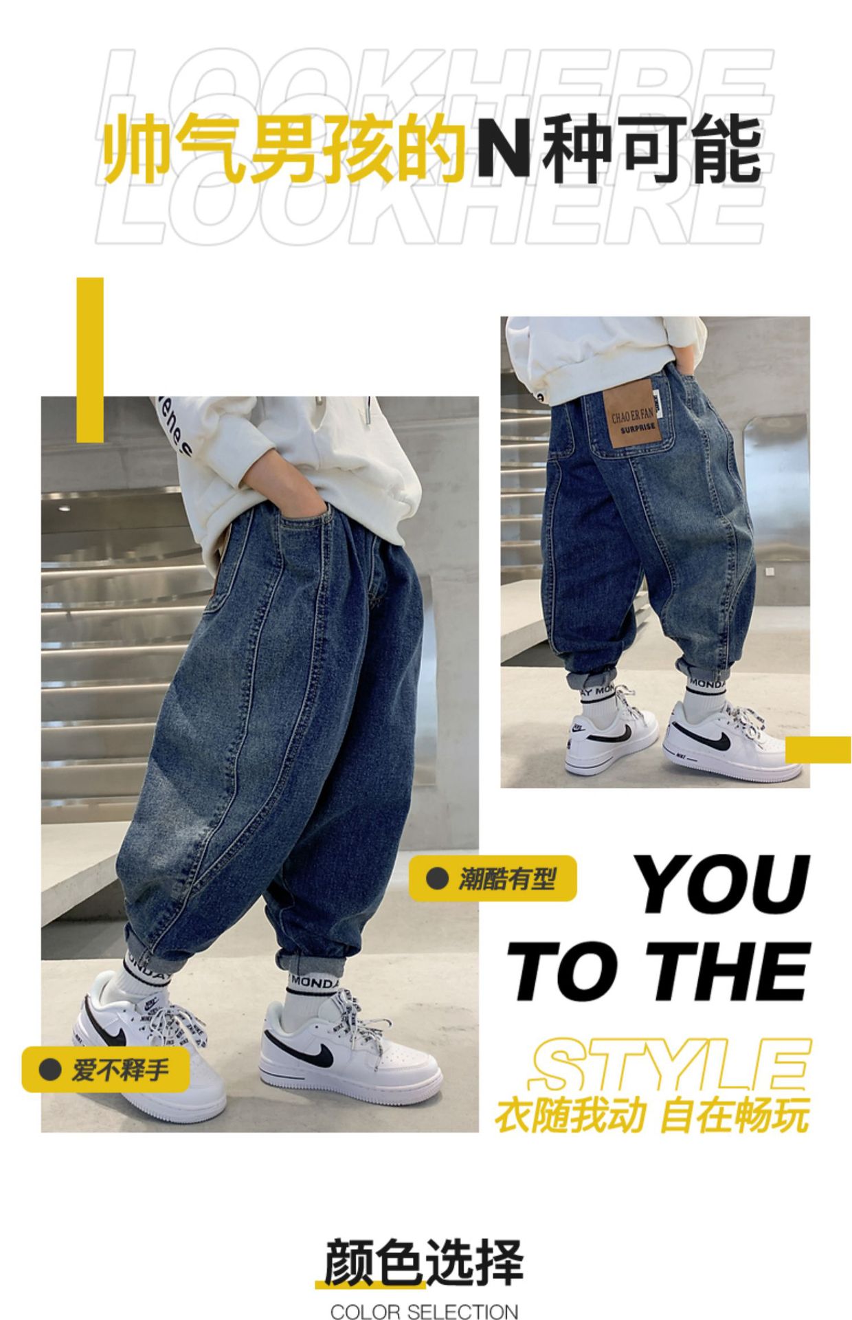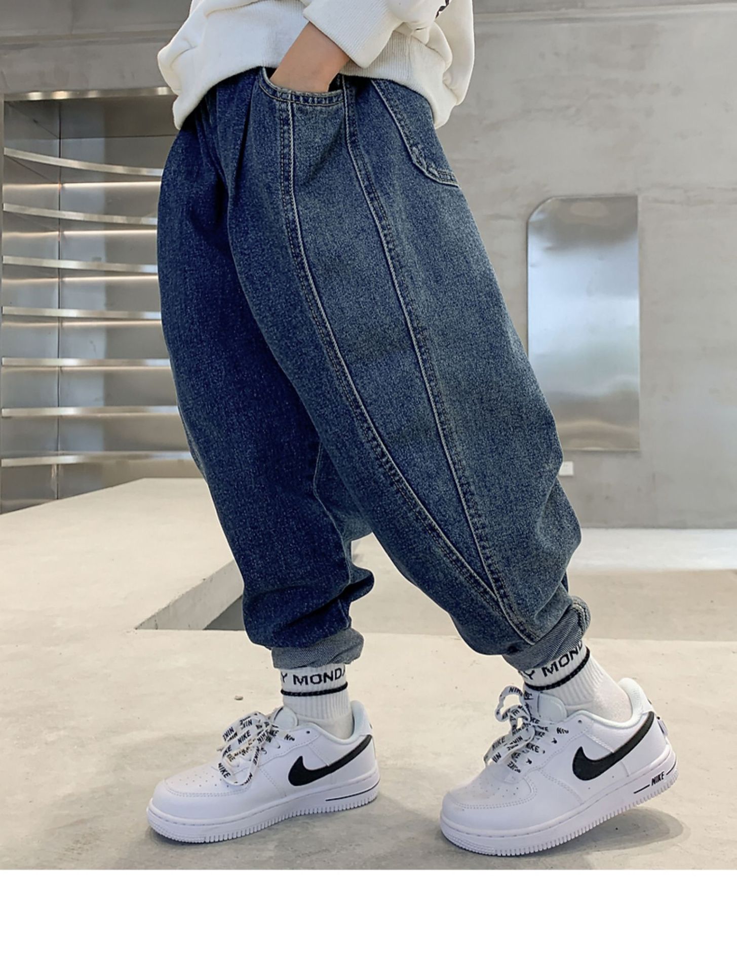 남아 바지 2023 봄 새 아동 청바지 한국 느슨한 아빠 바지 잘생긴 만능 캐주얼 바지스토어 가기