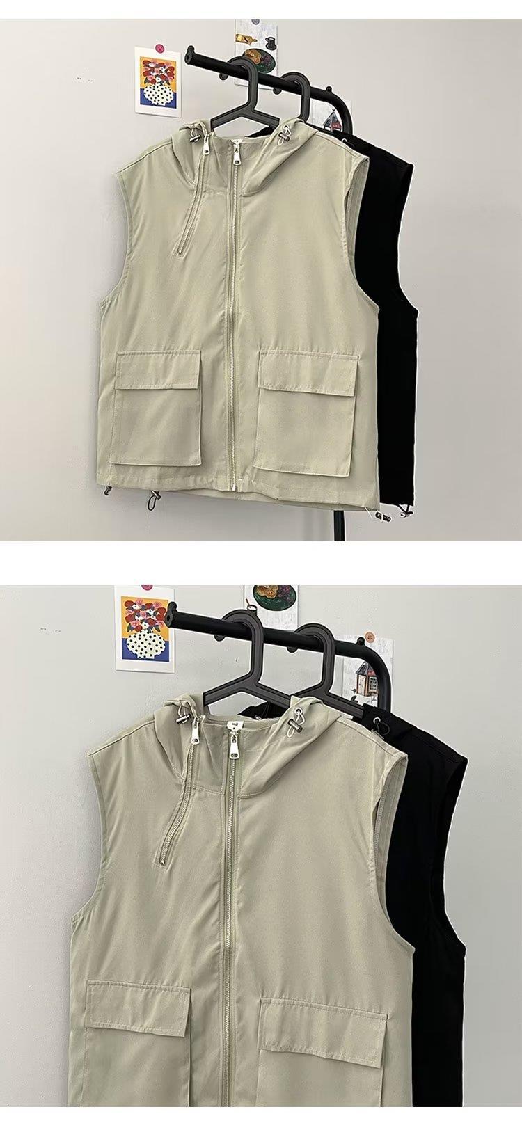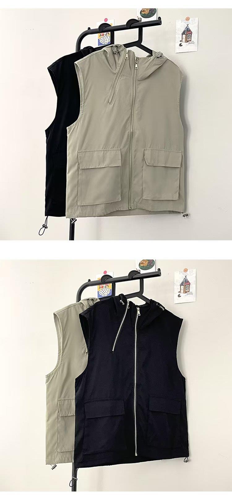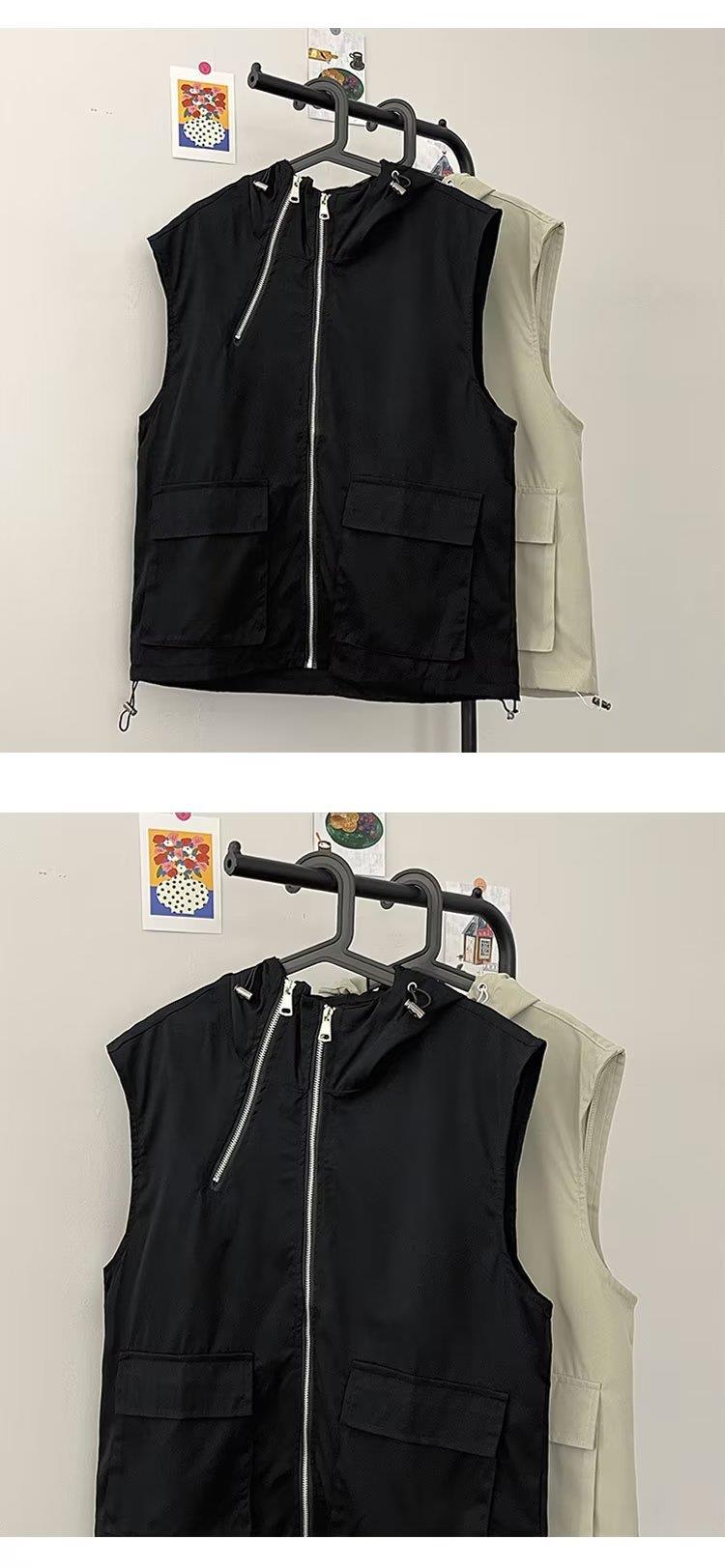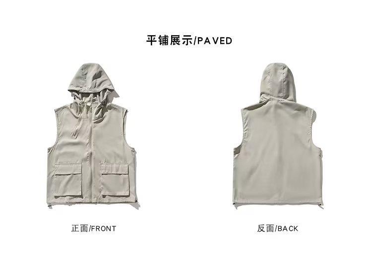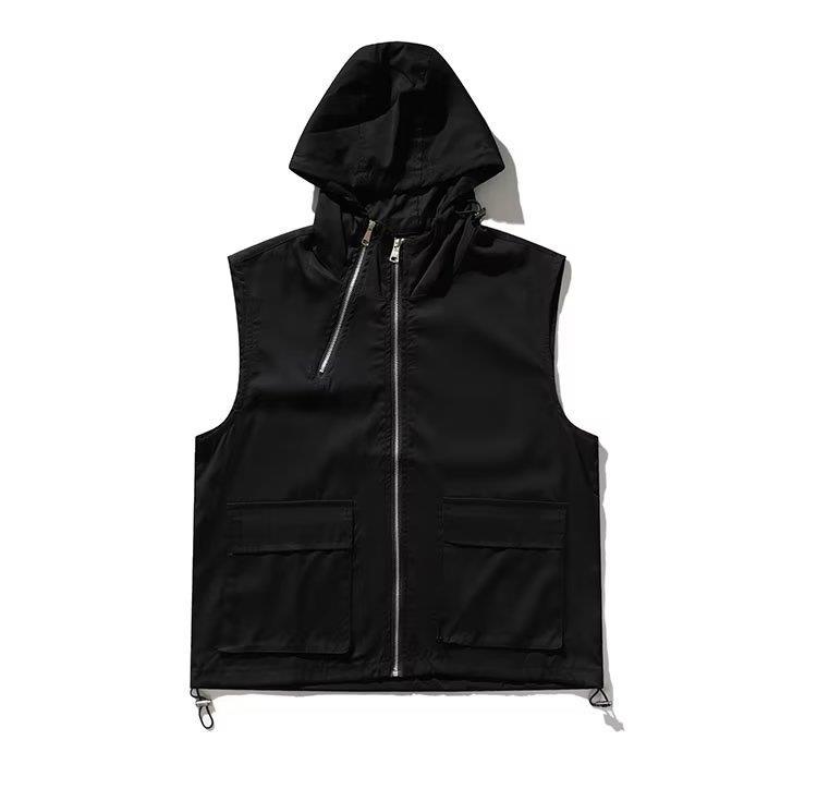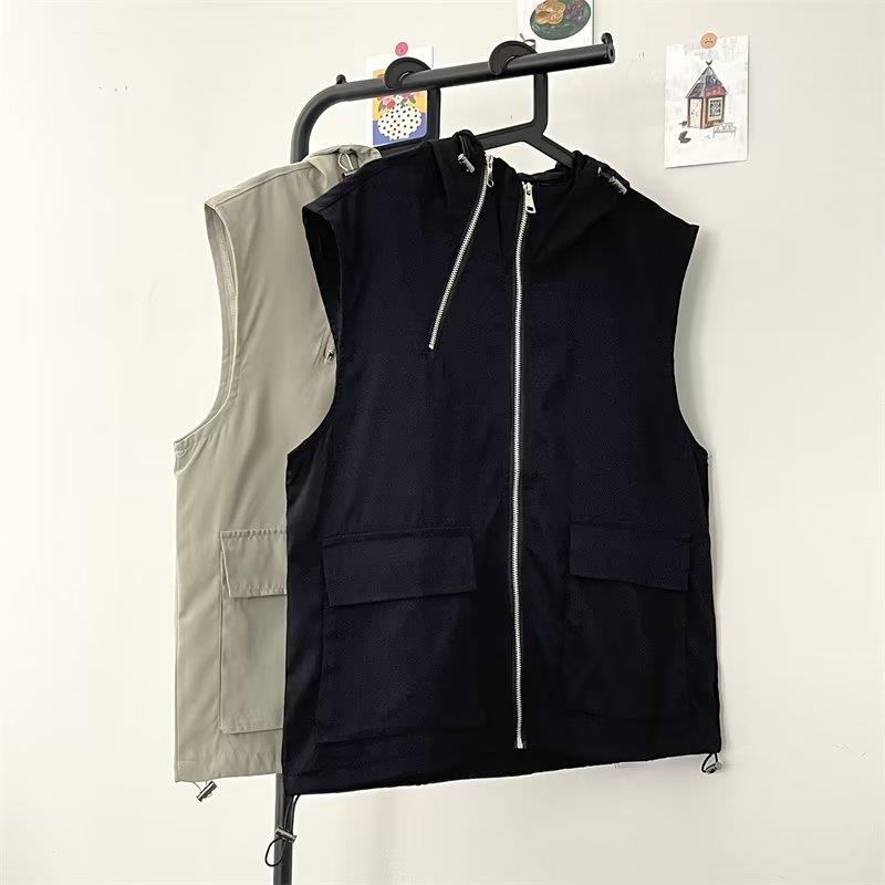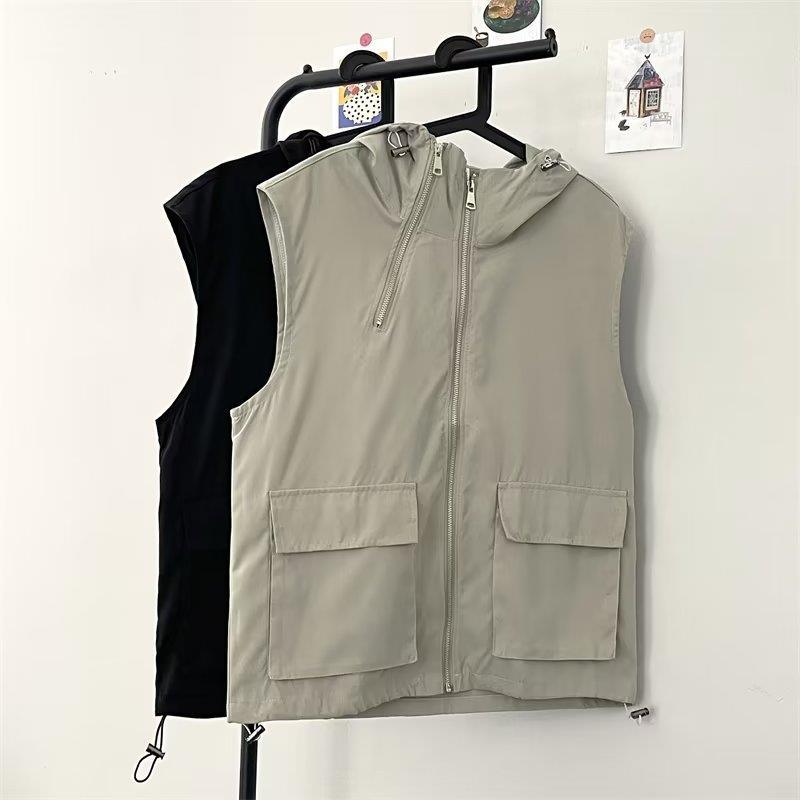 디자인 센스 지퍼 러쉬 의류 남성용 여름 주름 툴링 기능성 고급 감각 느슨한 스포츠 민소매 조끼스토어 가기