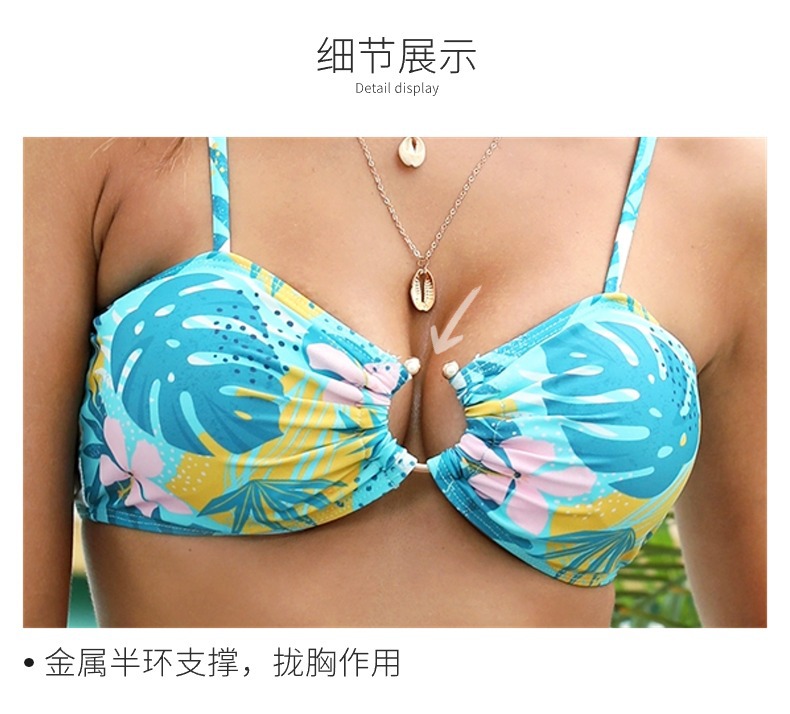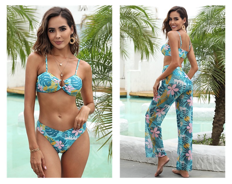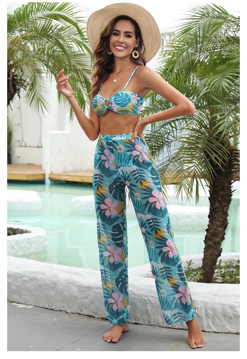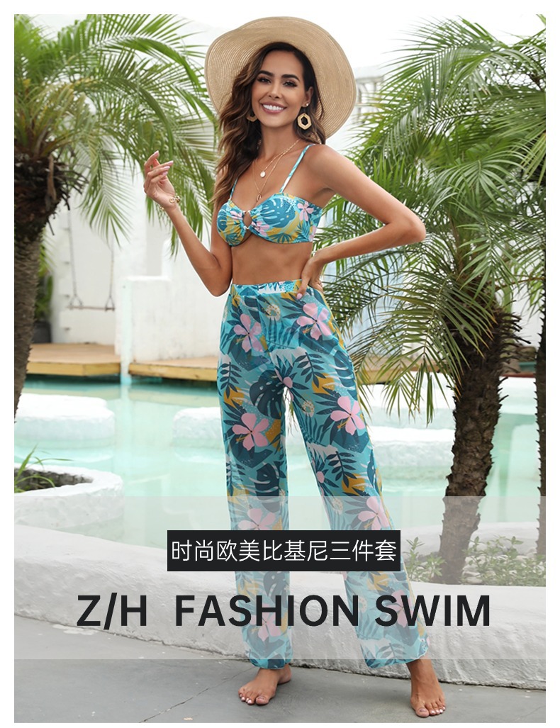 여성용 수영복, 튜브탑, 플랜트 프린트, 비키니 3피스, 여성용 스포츠 스타일, 고탄력, 편안함스토어 가기
